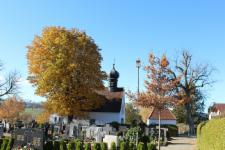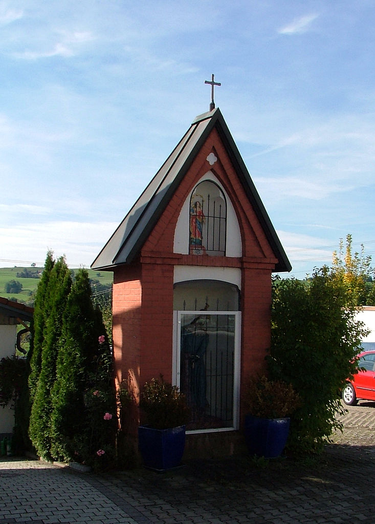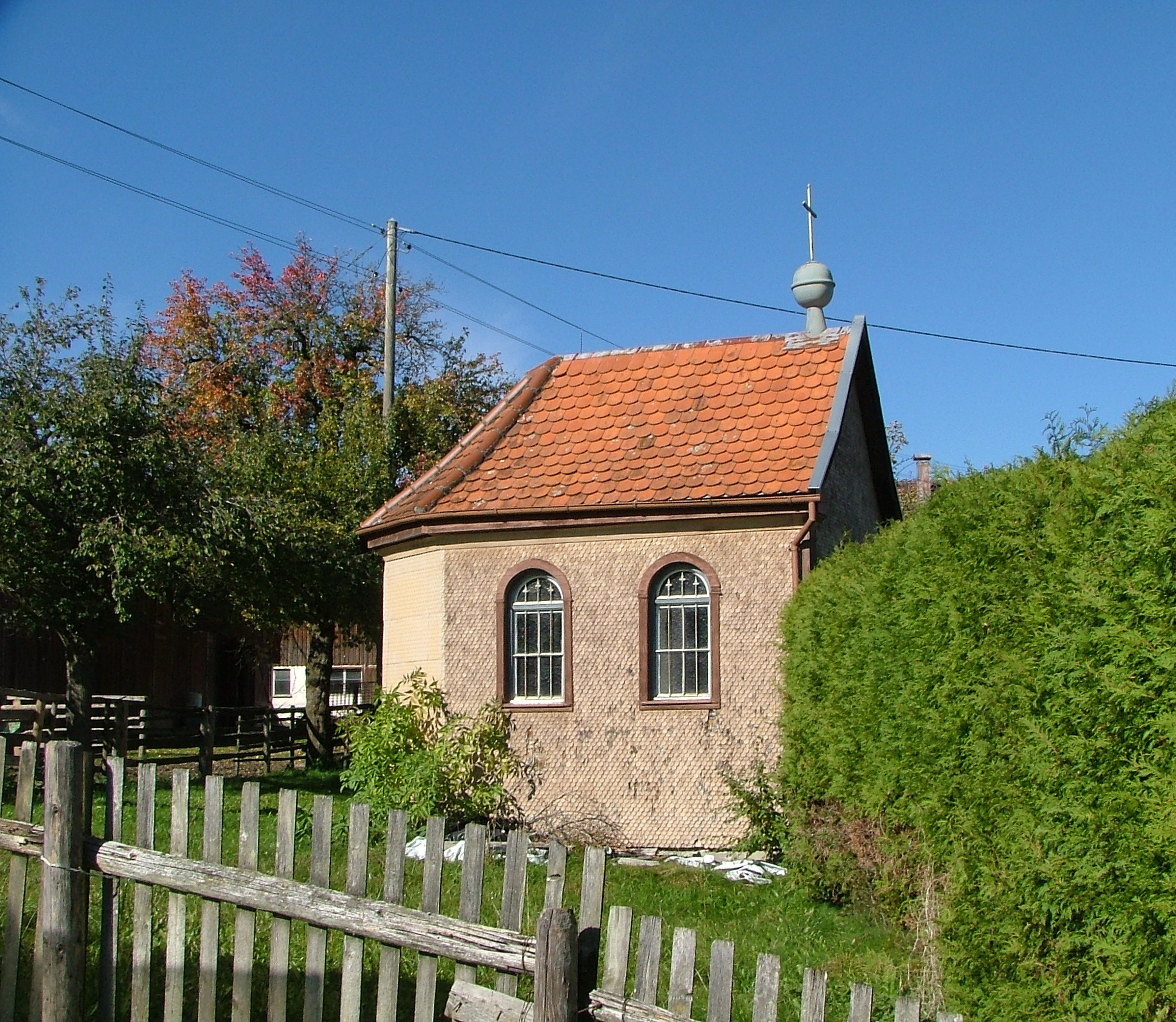 - Erbaut 1952, Saalbau mit eingezogenem Chor , Dachreiter und Zwiebelhaube, historische Ausstattung , Diesenbach 4