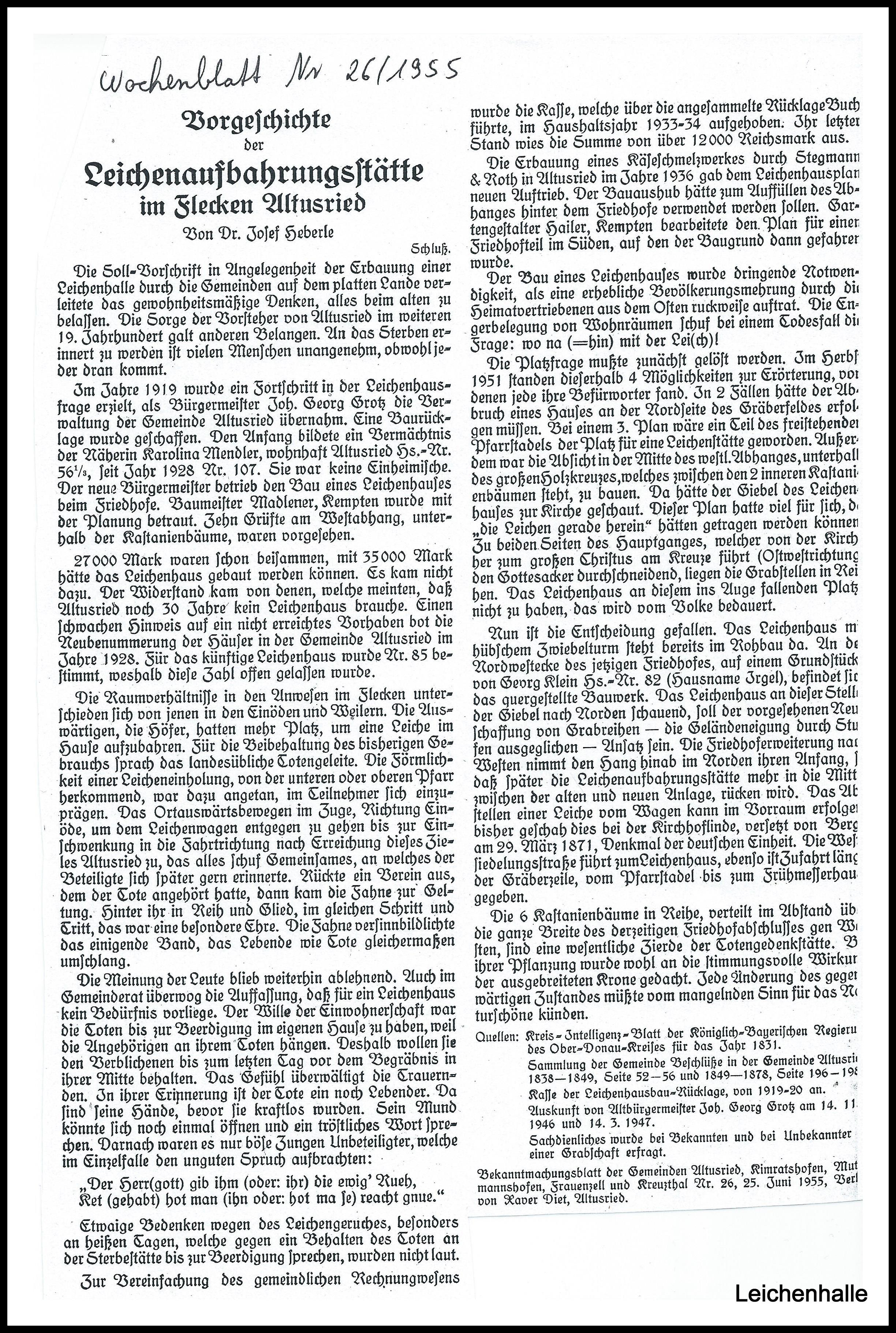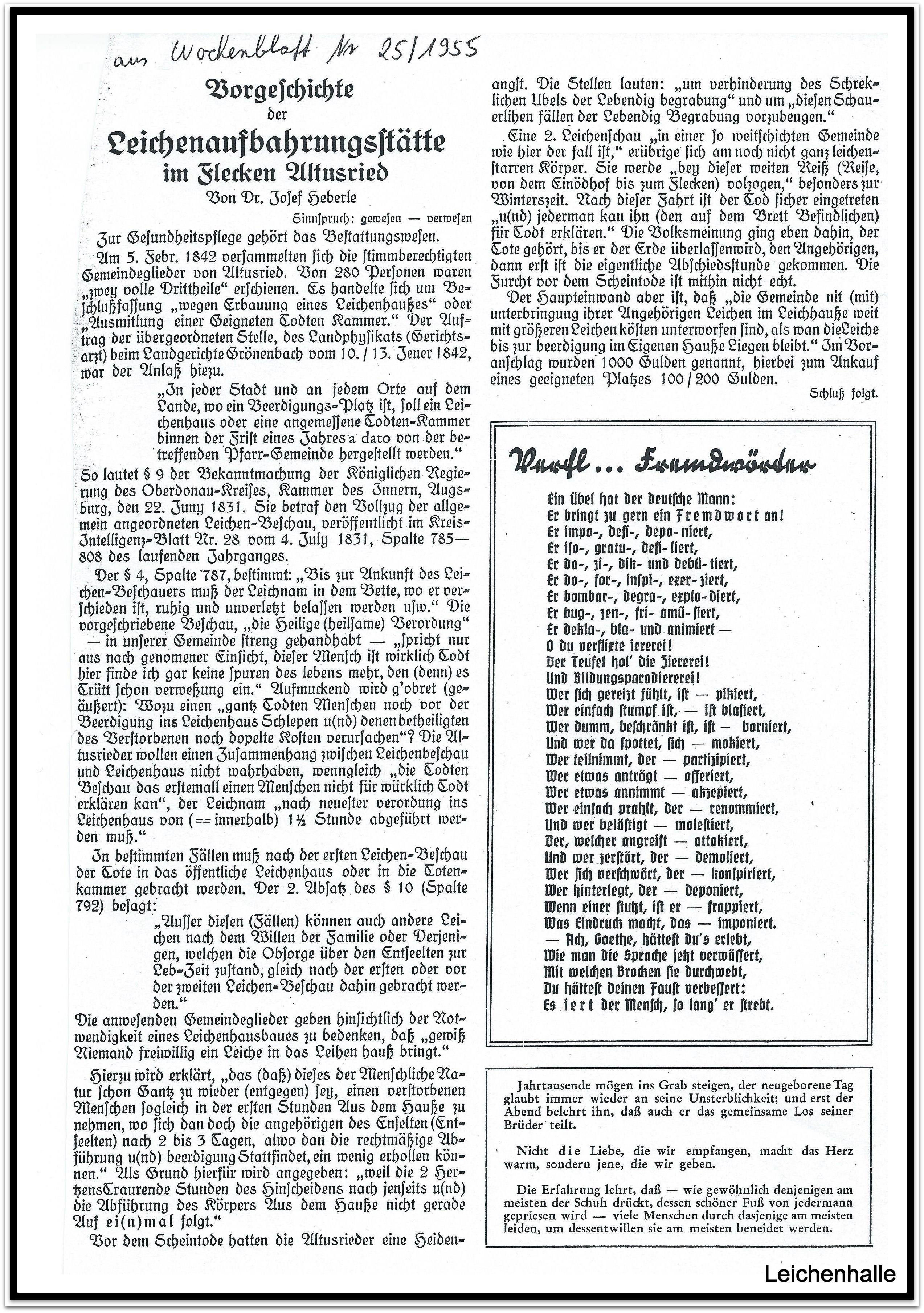 1955 Vorgeschichte der Leichenaufbewahrungsstätte im Flecken Altusried