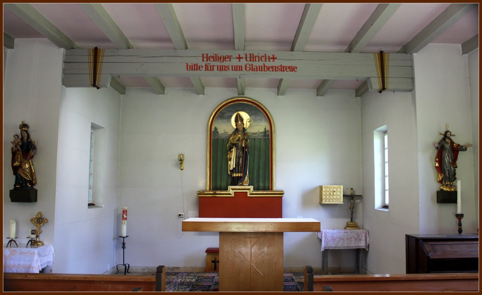 Die Kapelle befindet sich in Bachtels, also im Norden der Gemeinde Wiggensbach, wird aber ebenso wie das Gasthaus zum Hirsch wegen ihrer Nähe von Altusriedern häufig besucht. Die Kapelle wurde 1938 für den Schulsprengel Bachtels errichtet. Aus dem Vorgängerbau der Kapelle stammt die Holzfigur des Hl. Ulrich aus der Zeit um 1470. Daneben findet sich noch eine Figur des Evangelisten Johannes aus der zweiten Hälfte des 17. Jahrhunderts in der Kapelle, sowie eine barocke Muttergottes.