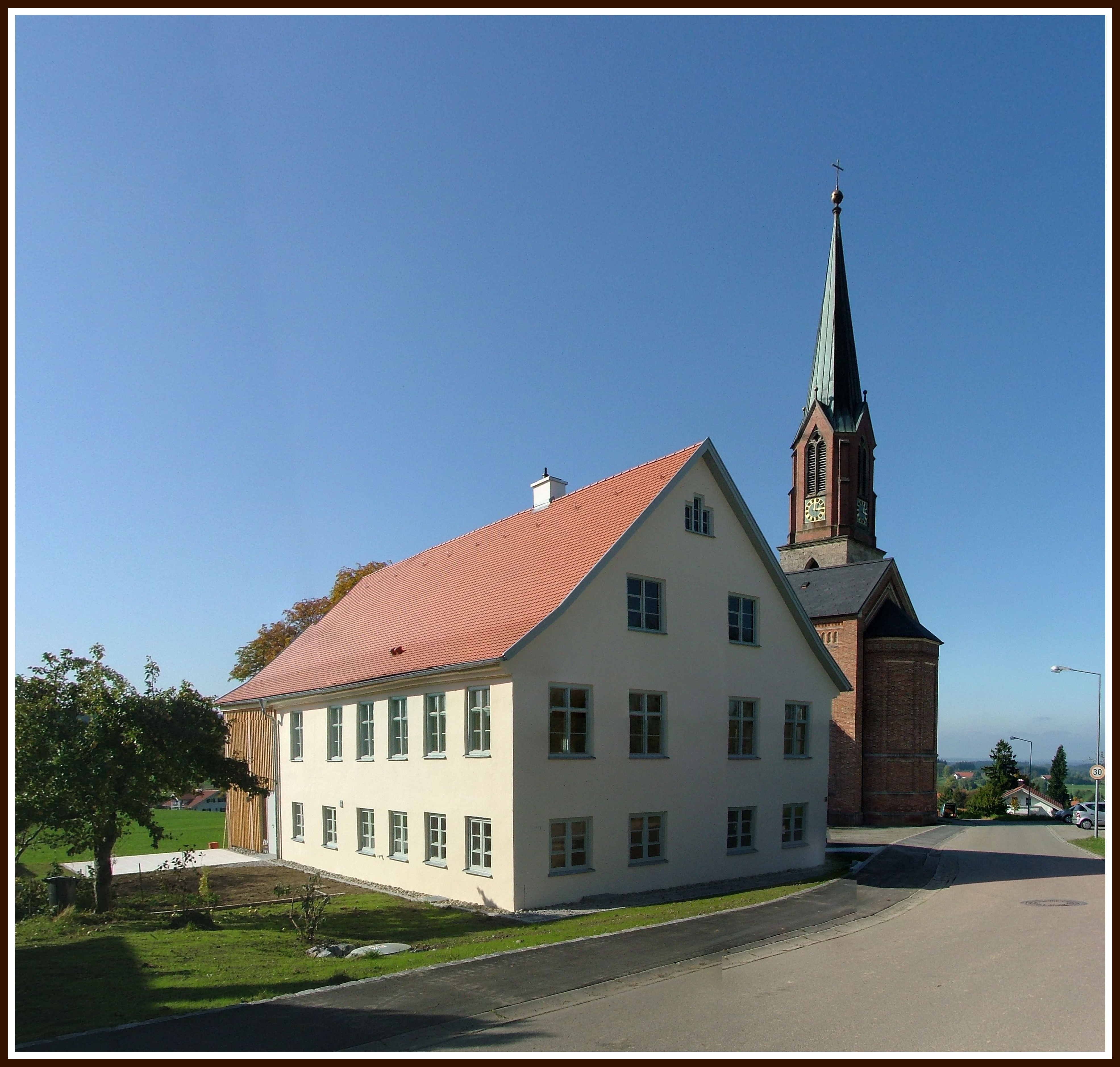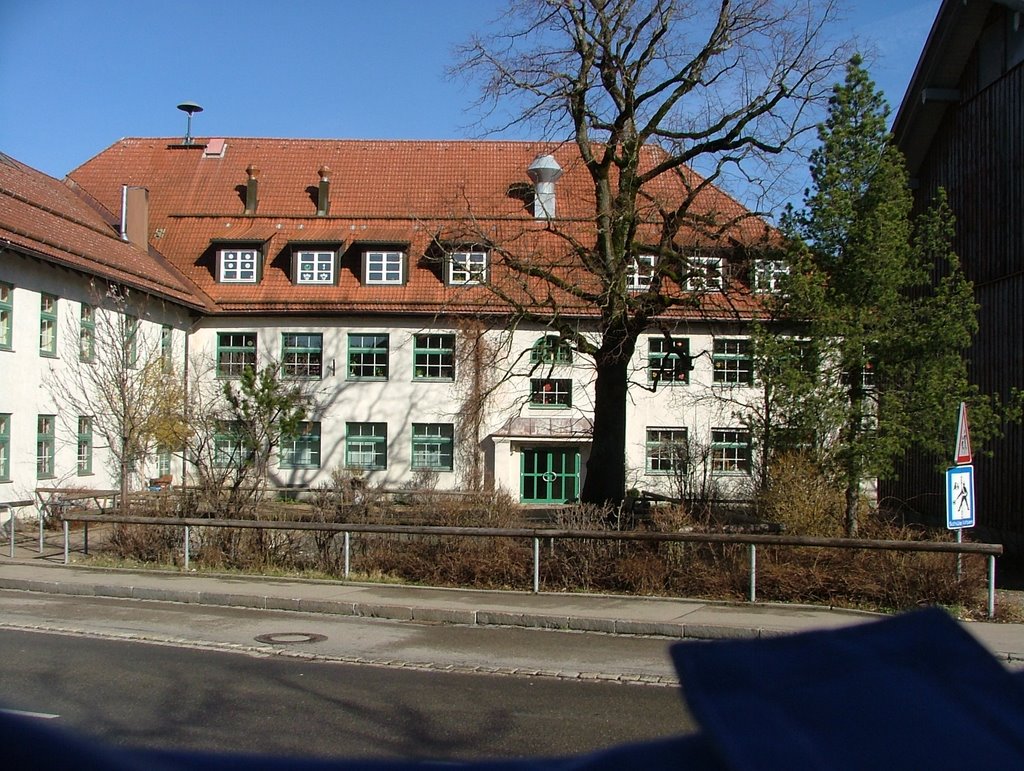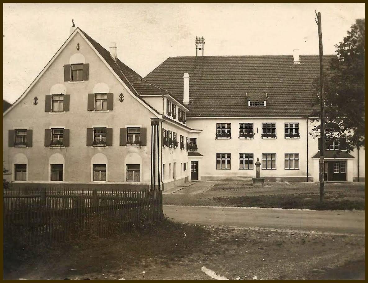 Um 1900 war das heutige Grundschulgebäude noch ein stattlicher Bauernhof mitten im Dorf. Es wird beschrieben als Oekonomie und Pferdehandlung, der Besitzer war J.G. Reisacher. Das Wohnhaus zeigte eine prächtige Fassade mit geschweiftem Giebel zur Hauptstraße. Im Hof dicht an der Straße war die Brückenwaage mit dem Waagehäuschen. Der große Wirtschaftsteil hatte ein Scheunentor im zweiten Stockwerk, deshalb führte eine lange Brücke aus Balken von ebener Erde hinauf.