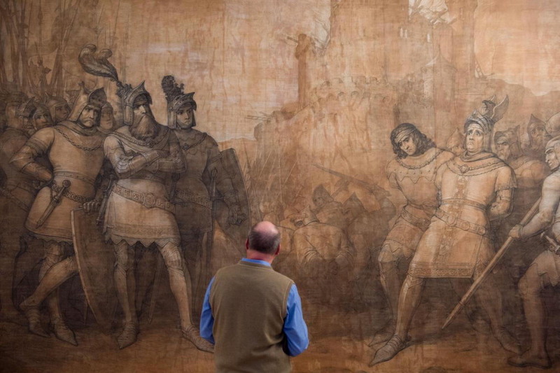 - Die Vorentwürfe auf Karton für die Residenzbilder sind zum Glückk erhalten geblieben. Sie fanden viel Lob von König Wilhelm.