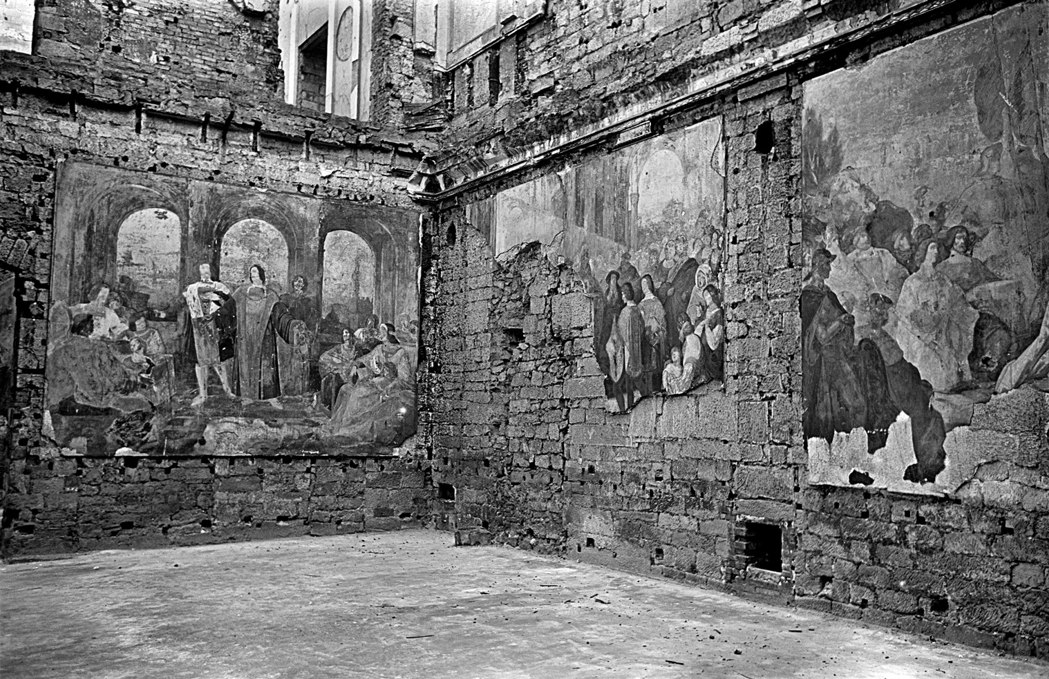 - Die zerstörten Wandfresken in der Residenz, Fotographie von 1955
