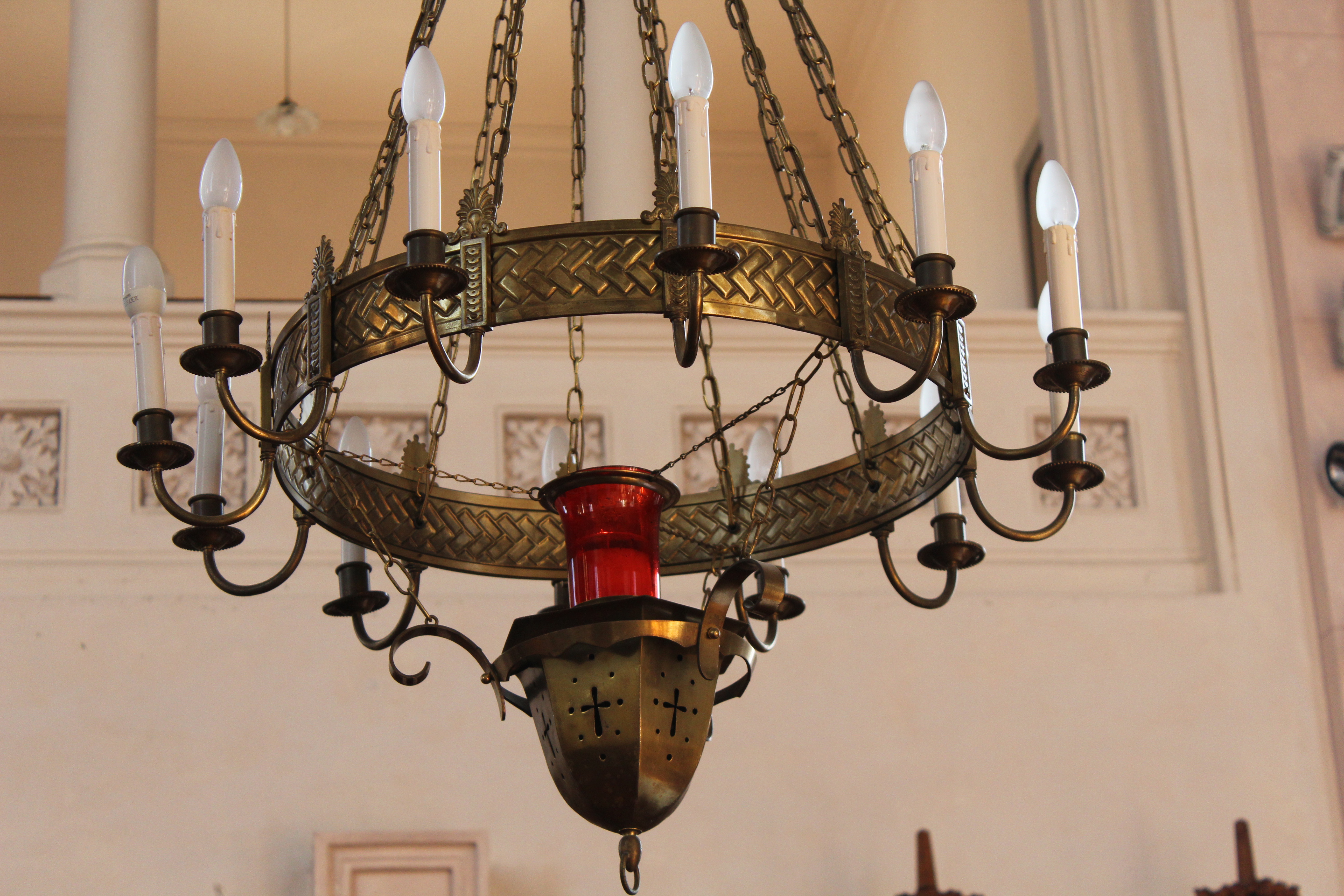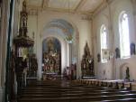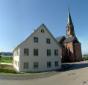 Eingang - Westfassade - Chorraum - Deckengemälde - Leuchter - Pfarrzentrum Alte Schule und Kirche