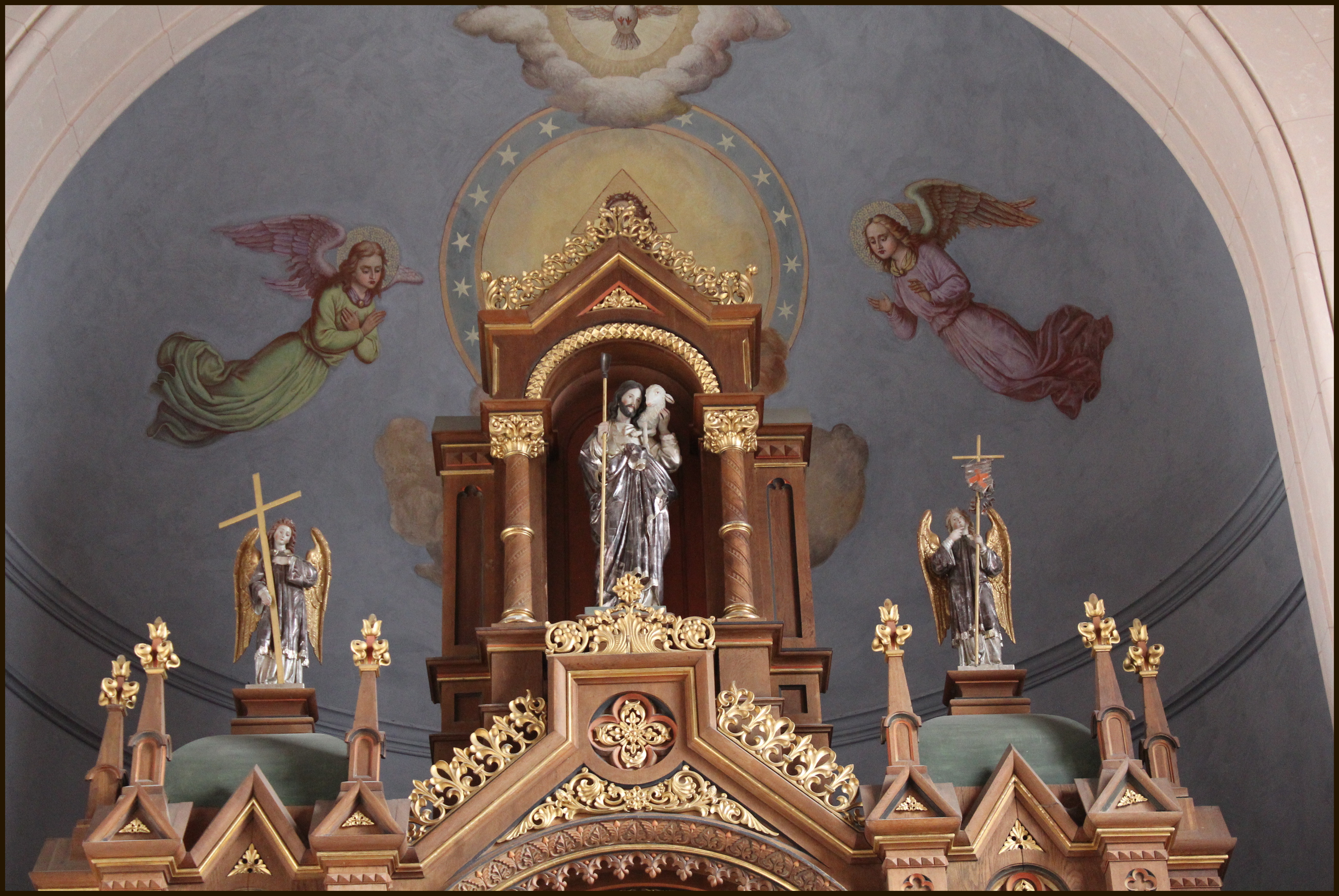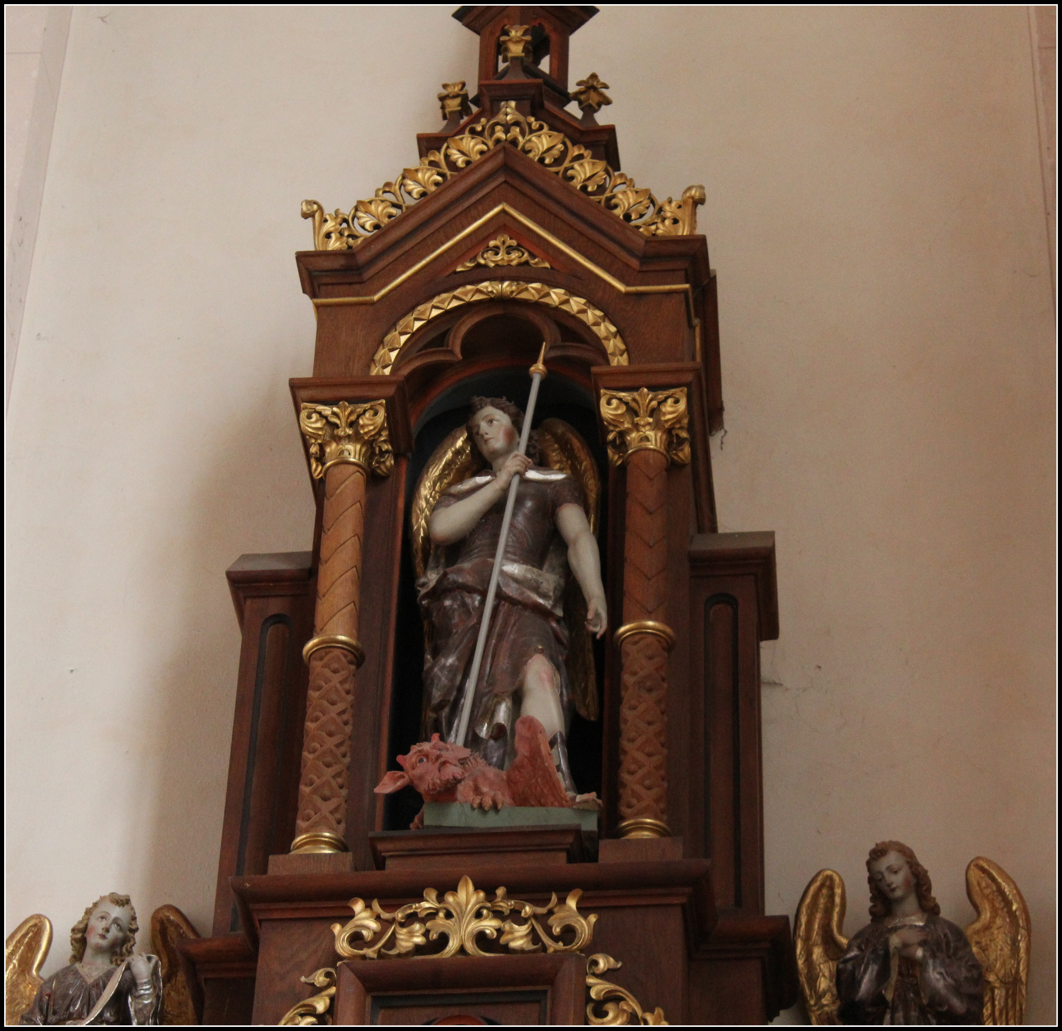 Engel auf dem Seitenaltar - Der Erzengel Michael besiegt den Drachen. - Jesus, der gute Hirte