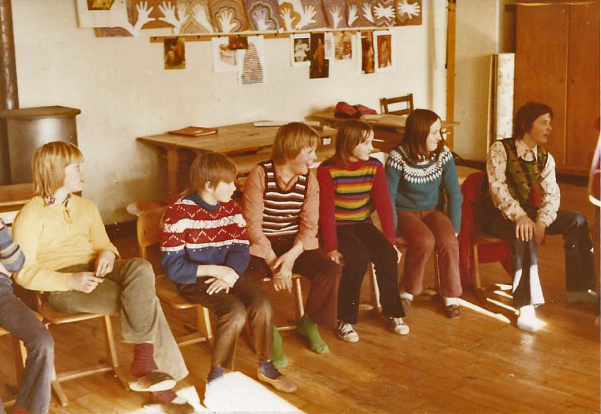 - Ein paar Jahre später. Wir haben 1975. Es sind Schüler von Manfred Unterreiner. Das Klassenzimmer wird durch einen Ölofen beheizt.