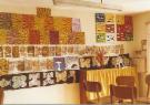 - An der Wand Zeichnungen vom Kunstunterricht.
