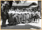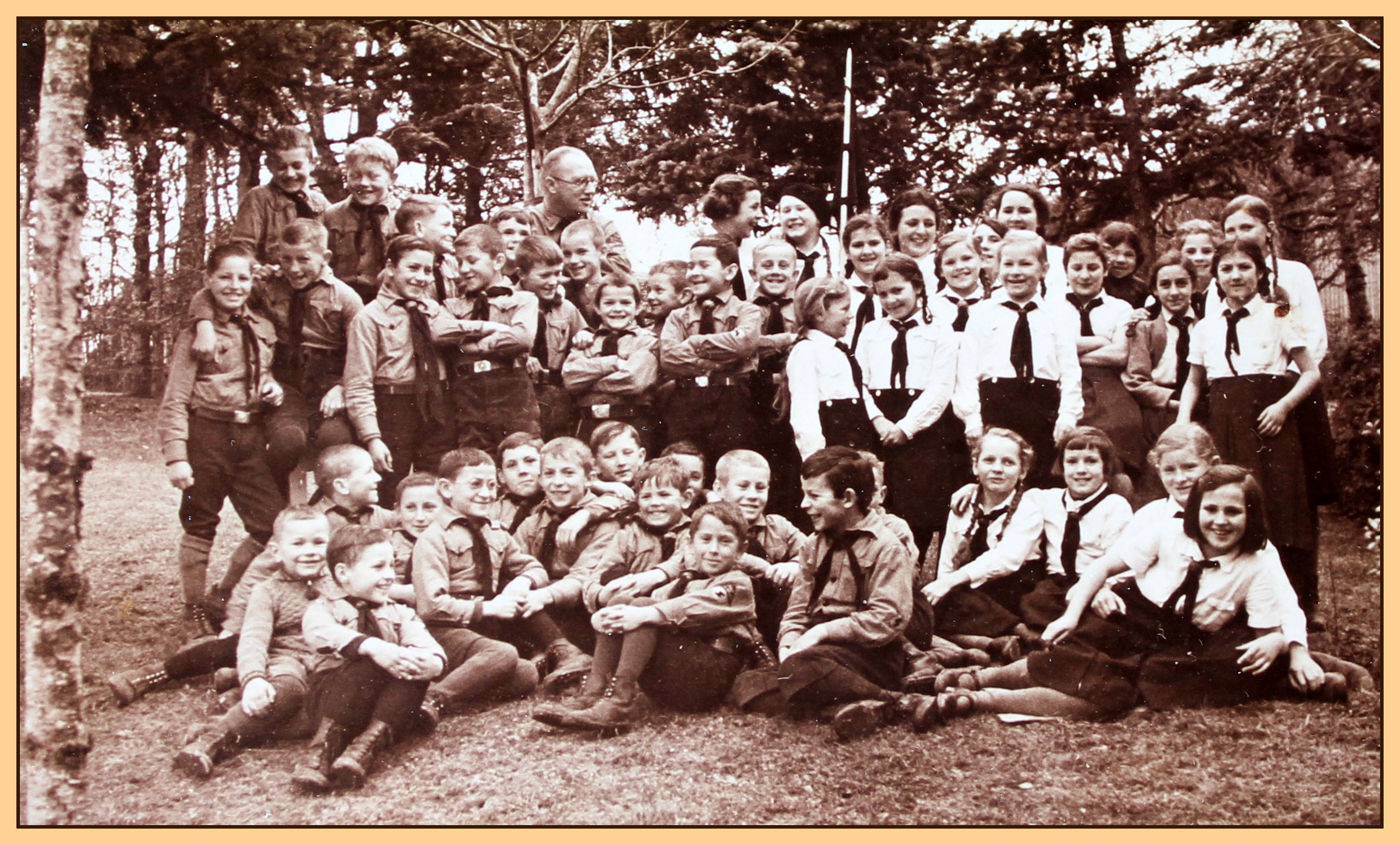 1934 BDM Mädchen und Jungschar mit Lehrer Ratschek. Alle Kinder sind fröhlich und gut aufgelegt.