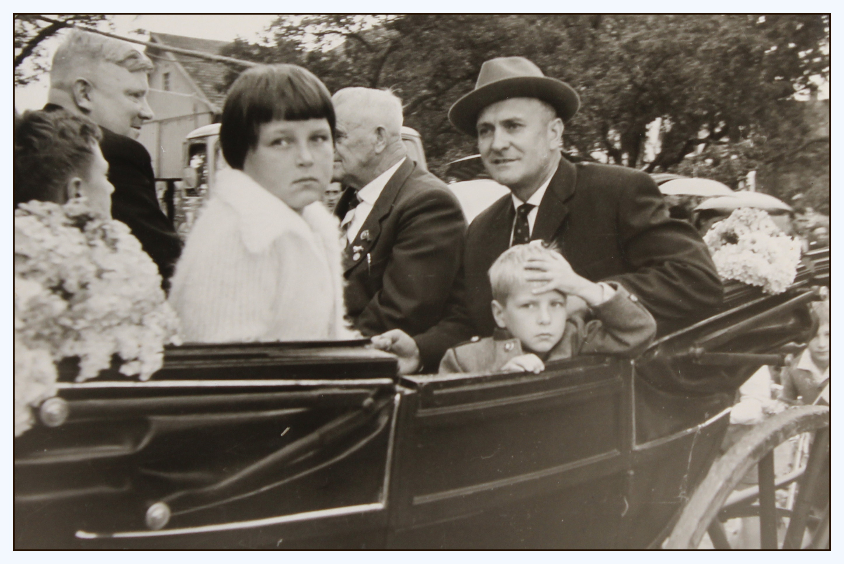 18.August 1960 Musikfest Frauenzell. In der Kutsche die Ehrengäste Landrat Riegert, Pater Drückl und Musikpräsident Anton Mayer.