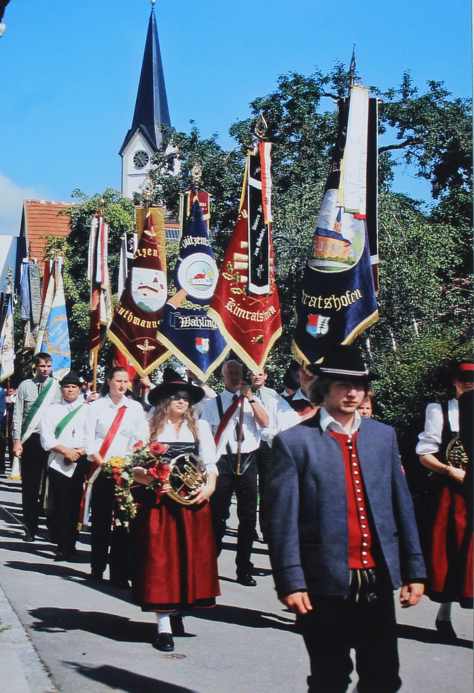 Zwei Bilder von der Musikkapelle Frauenzell aus dem Jahre 1951. Die Musikanten tragen Zivilkleidung mit einer Schildkappe. Das neue Gewand in der erneuerten Tracht wird erst später eingeführt