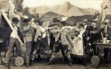 Alpenländisches Theaterstück vor einem Gebirgspanorama. Gesten und Mimik sind gut einstudiert.