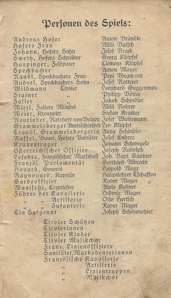 Dem Andreas Hofer Spiel wurde der Vortrag eines österreichischen "Flüchtlings" vorangestellt. Mit großem Pathos wird darin die Politik der Partei vorgetragen, gefüllt mit den damals gängigen Schlagwörtern. Das Thema Österreich und Andreas Hofer passt gut zu den Absichten der NSDAP, die Landkarte Europas zu verändern. Das erste Ziel soll der Anschluss Österreichs an Deutschland sein.