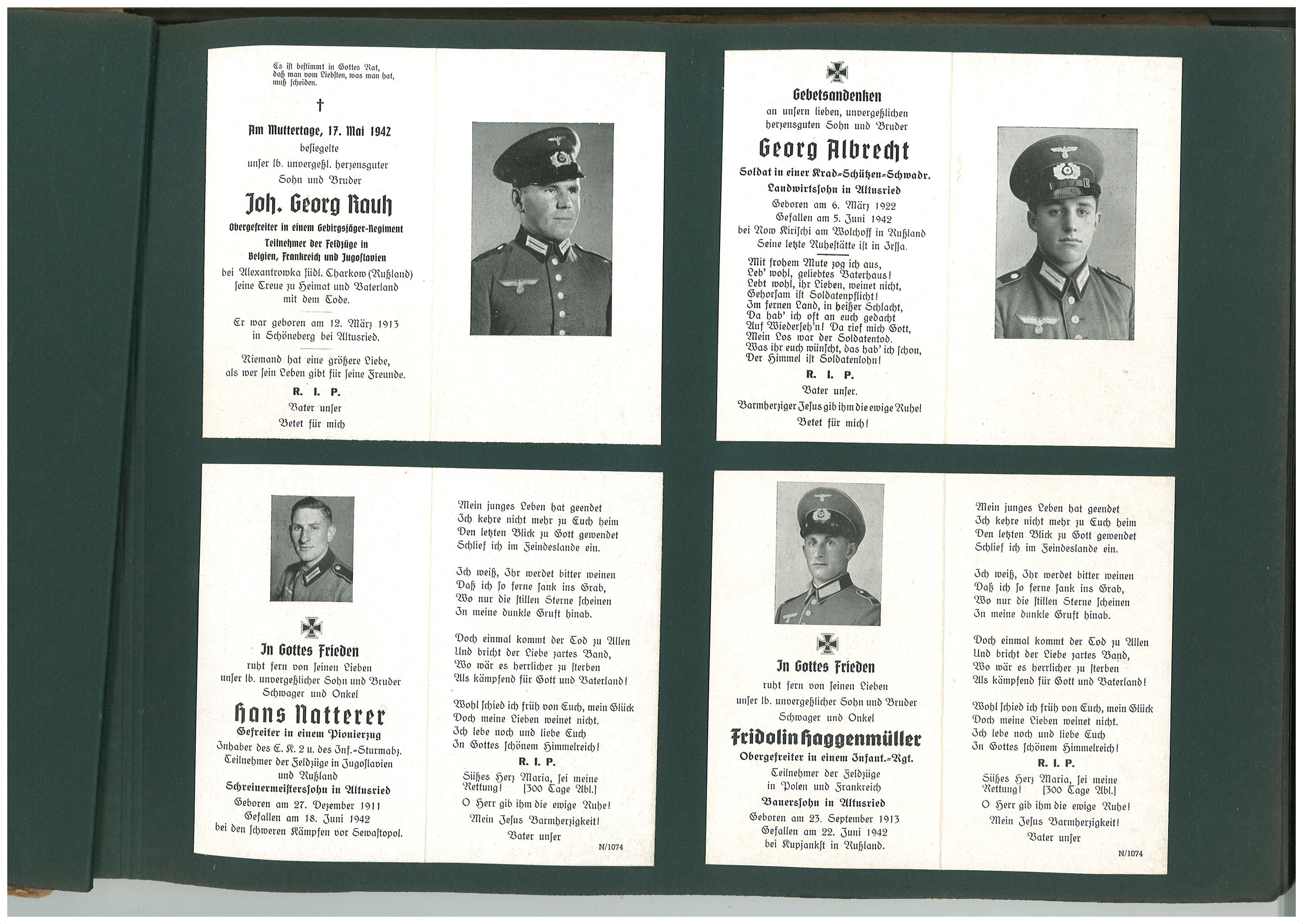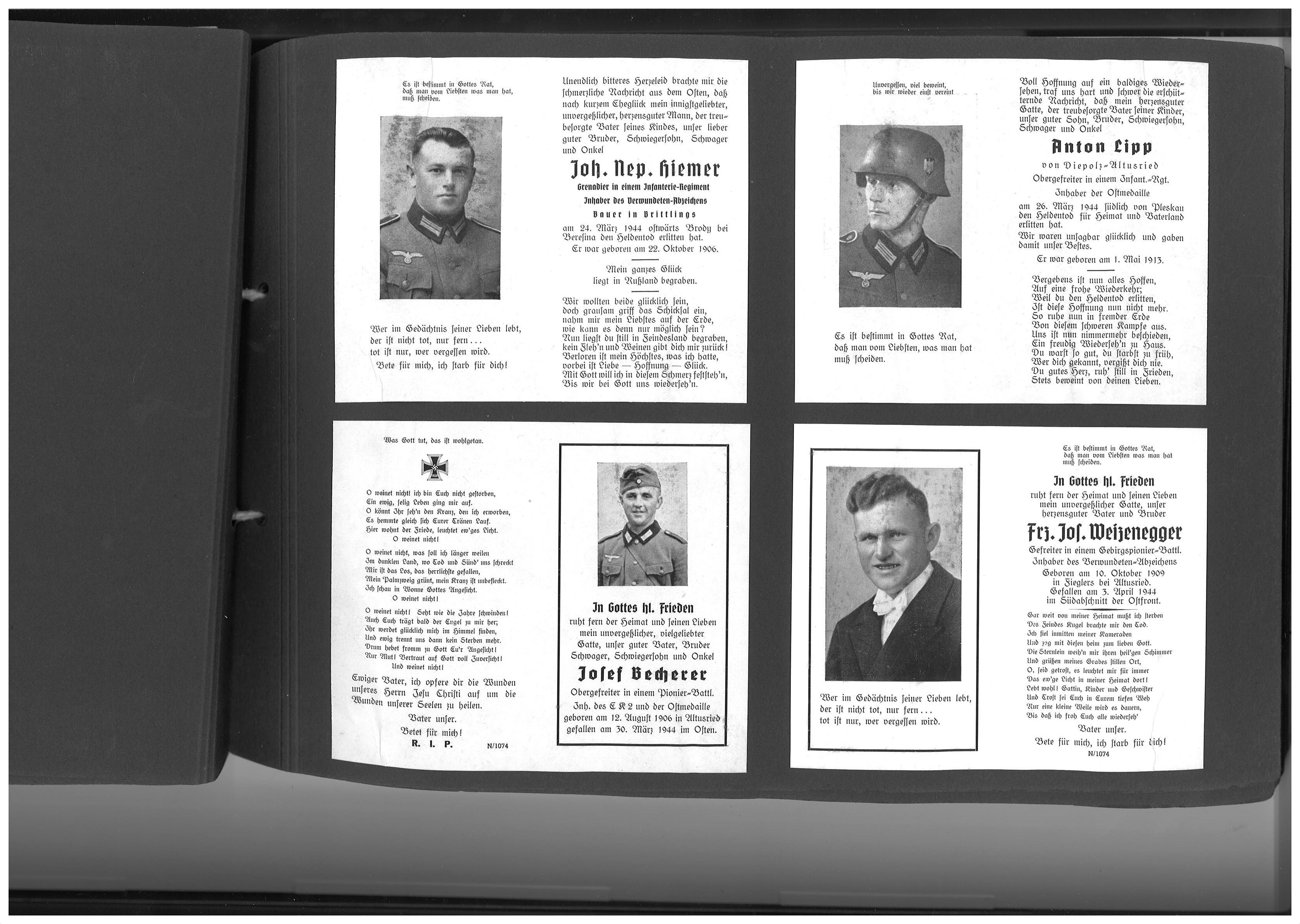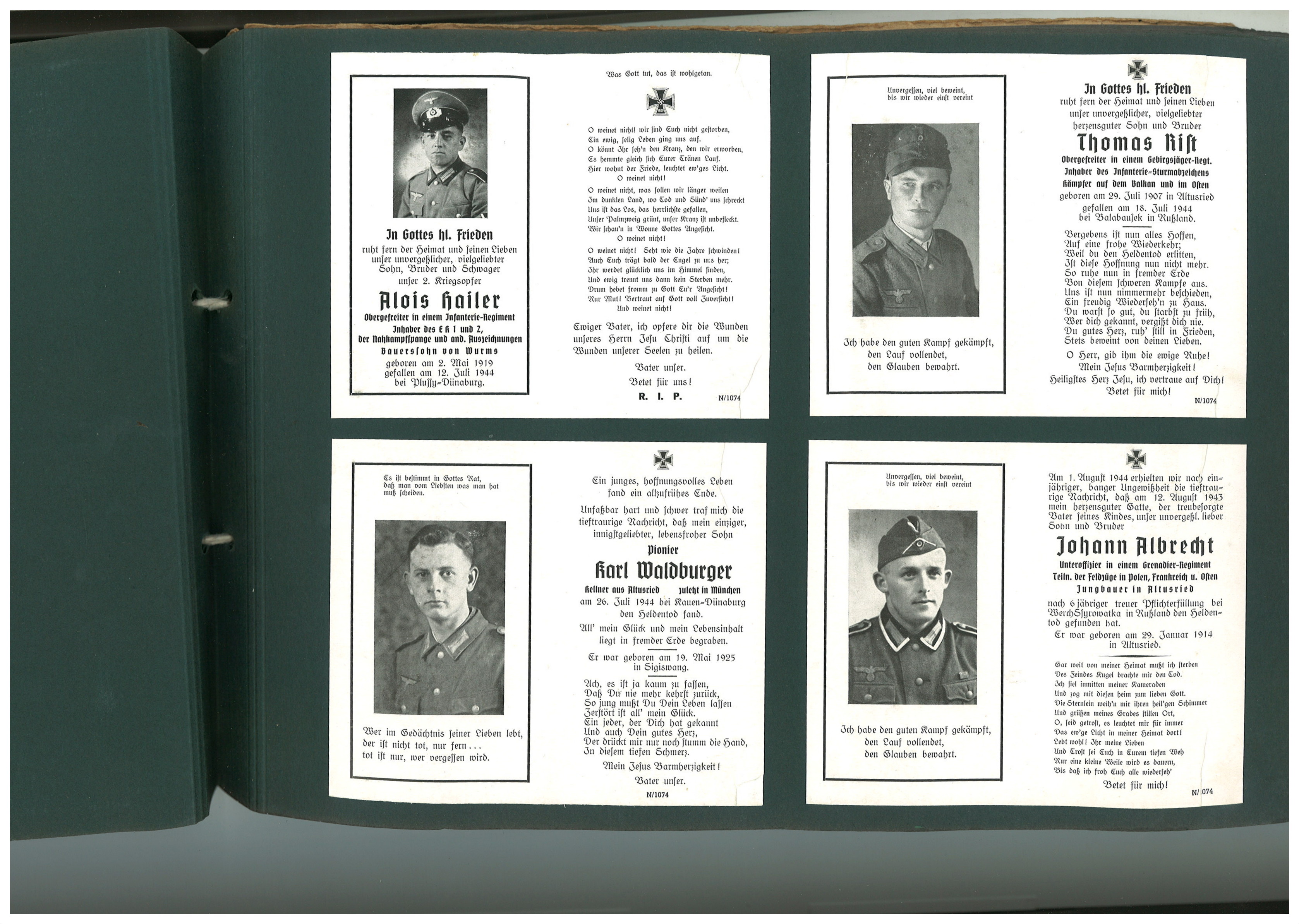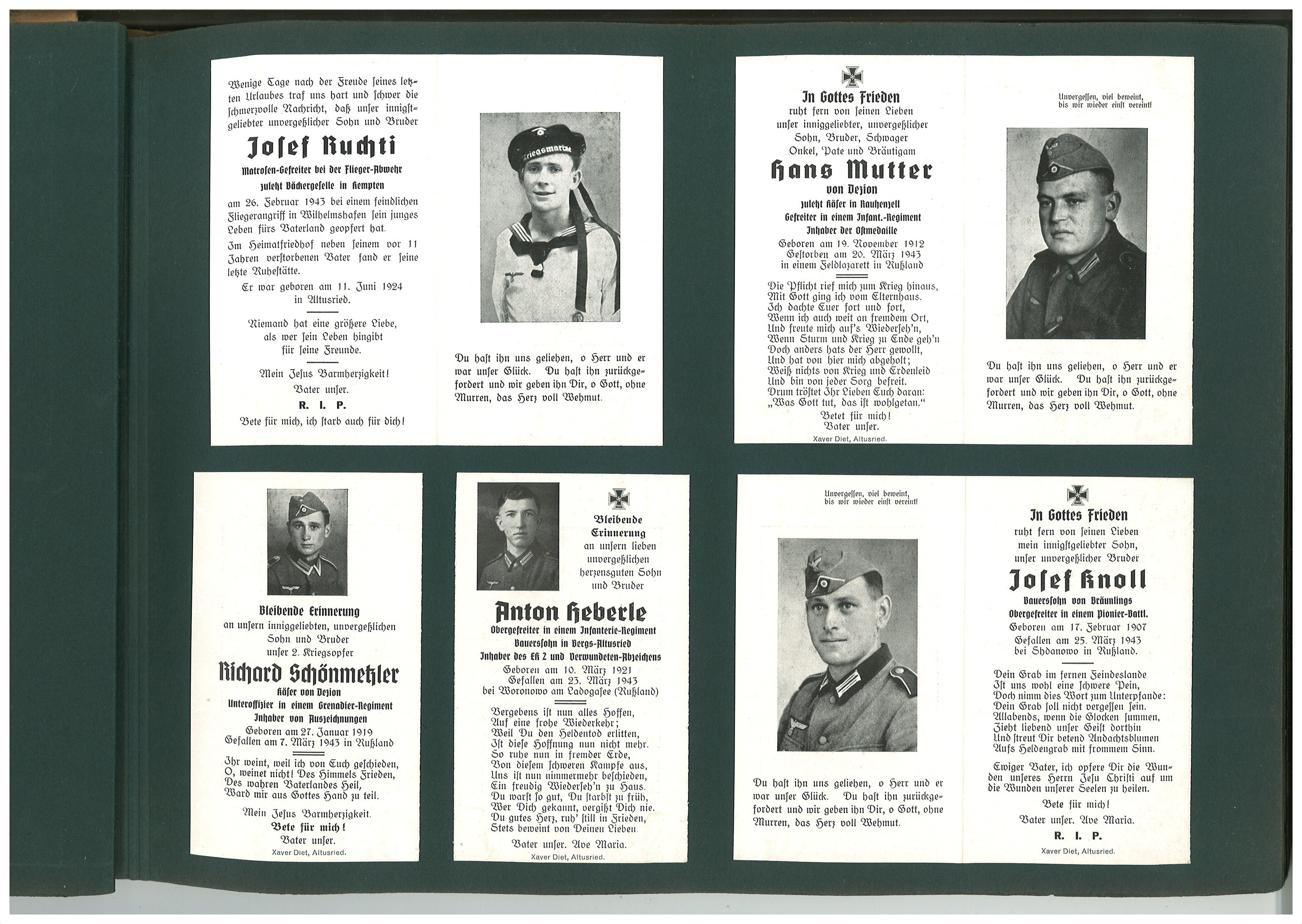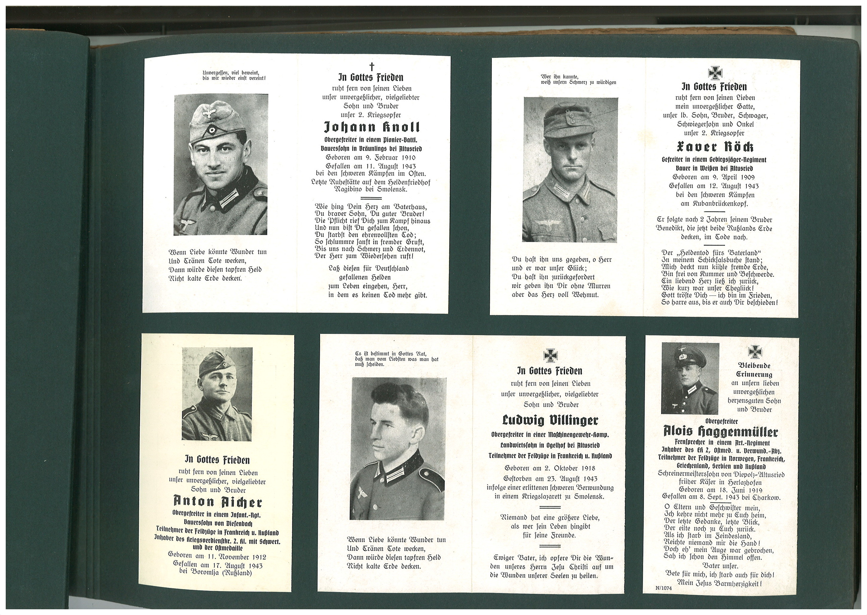 Siebzig Jahre nach dem Großen Krieg geben die Sterbebilder Nachricht über die vielen Tragödien, den frühen Tod der Soldaten und die Trauer der Hinterbliebenen. Reime und Gebete versuchen zu erklären und zu trösten. Die Orte des Todes spiegeln den Verlauf und die Brennpunkte des Krieges wieder.