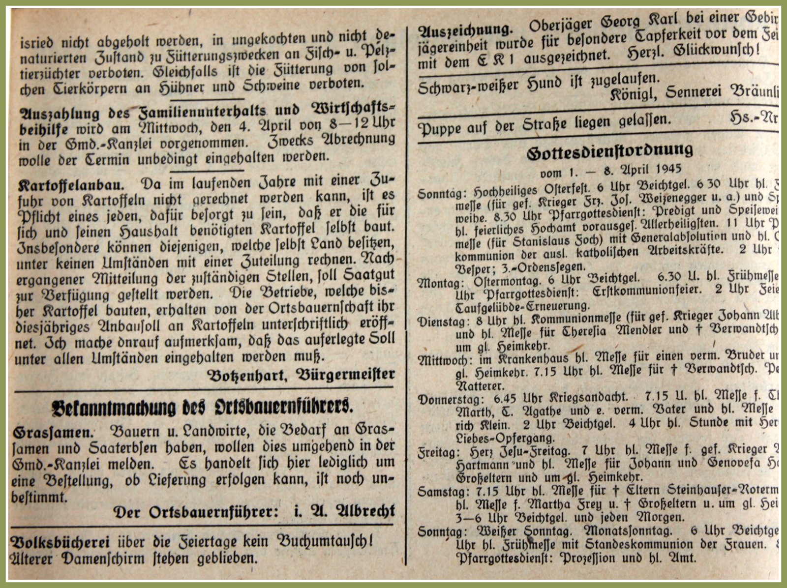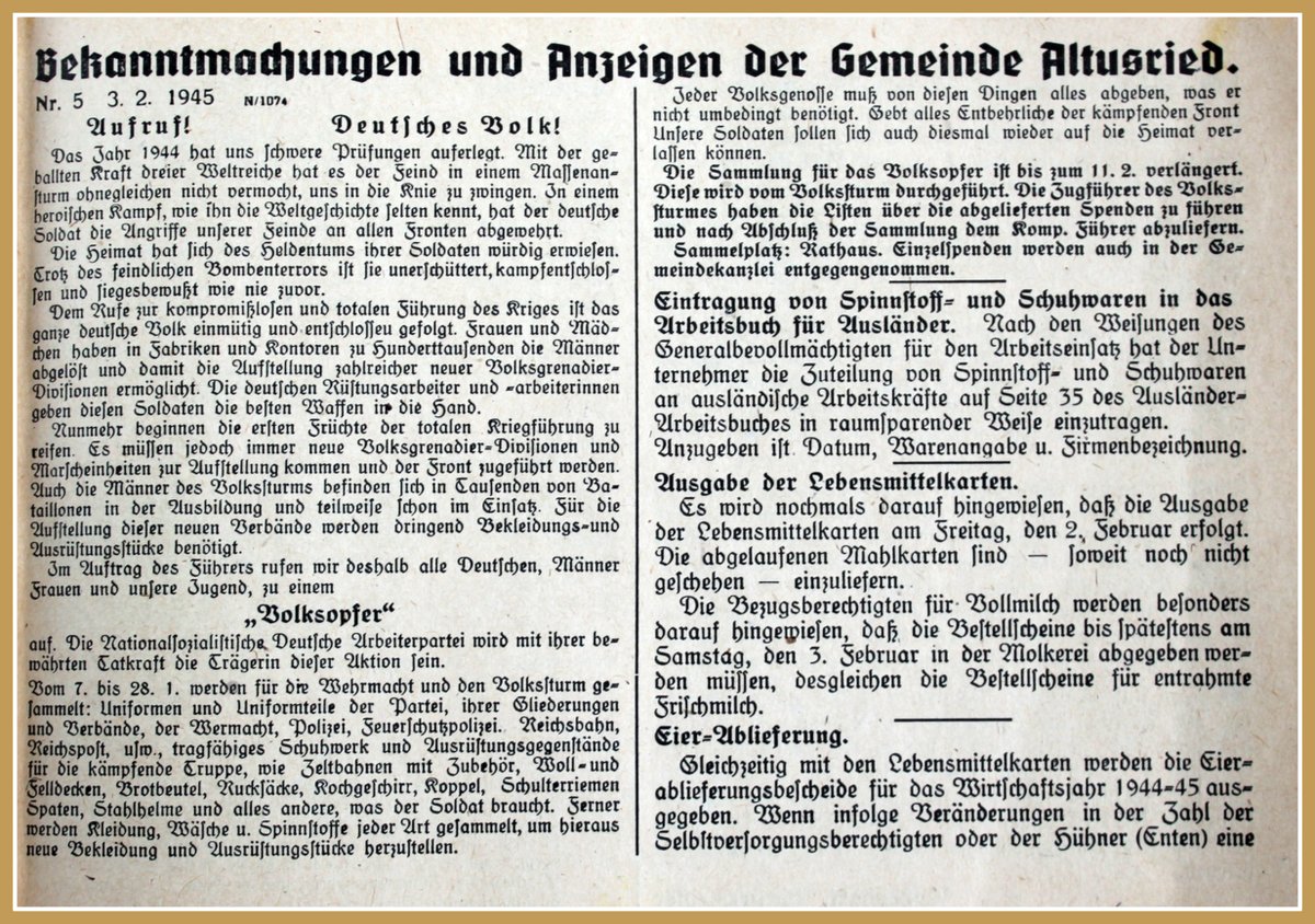 Eine glückliche Nachricht, zwei Soldaten, Hans Röck und Otto Kracker, wurden fälschlicherweise für tot erklärt und kehrten doch im September 1945 zurück.