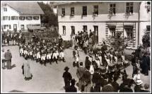 Die Spiele fanden bei Tageslicht statt, hier die Franzosengruppe beim Aufzug des Hoferspiels 1933.