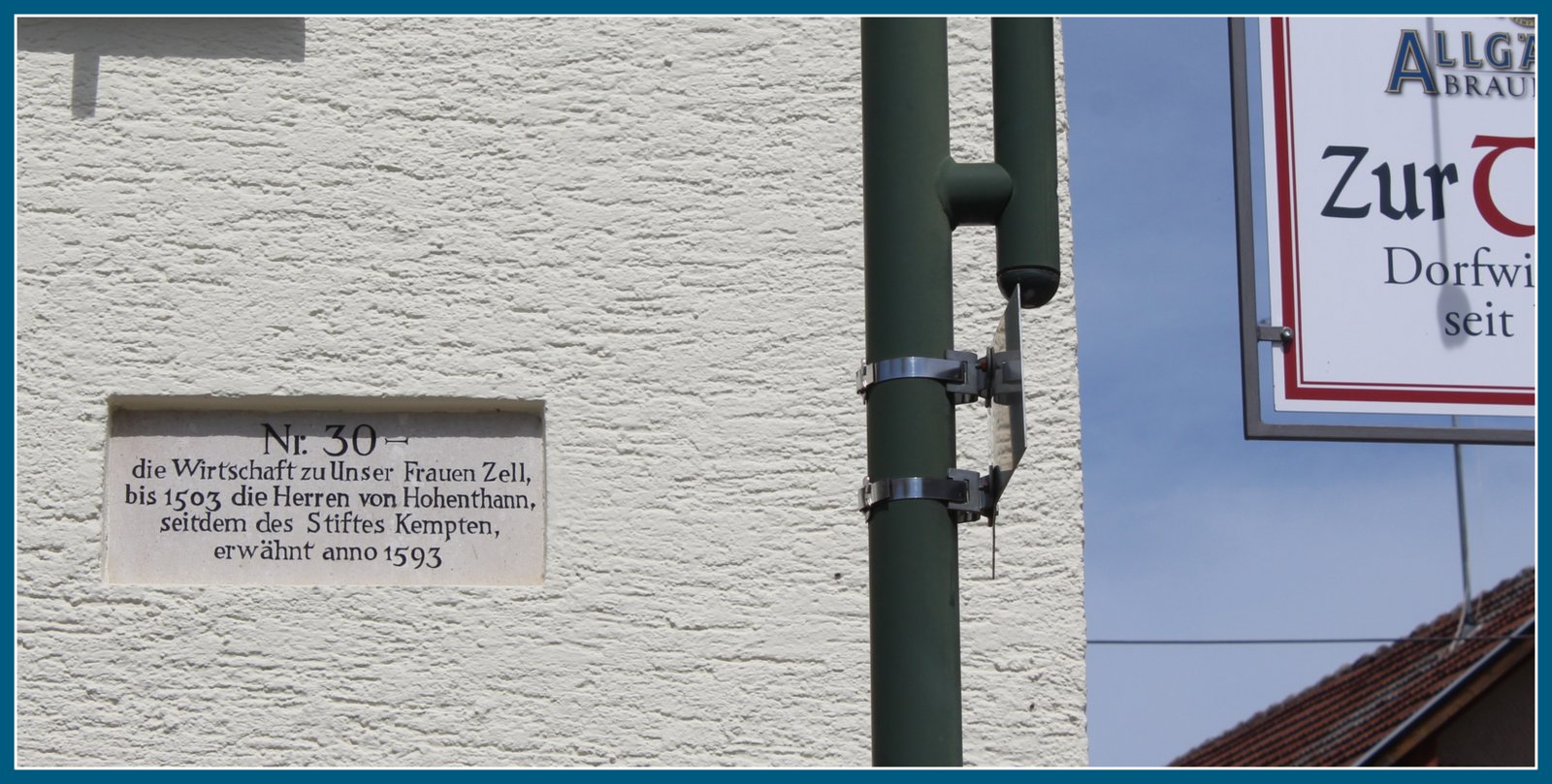 " Nr. 30- dieWirtschaft zu unser Frauenzell, bis1503 die Herren von Hohenthann, seitdem des Stiftes Kempten, erwähnt anno 1593 "