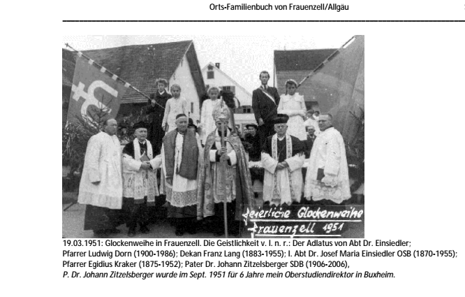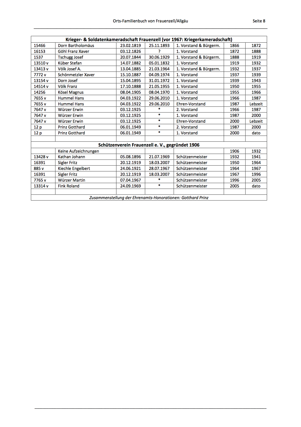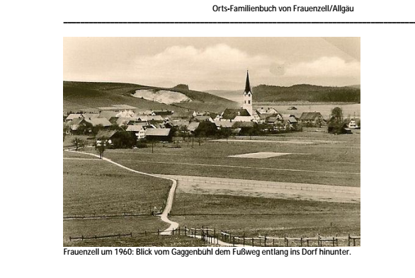 Quellen: Kirchenbücher Frauenzell, Bischöfliches Archiv Augsburg, Grönenbach-Fuggerische Landtafel im Stift Kempten, Aufzeichnungen von Oberlehrer Wilhelm Knoller (1879-1952) und Matthias Dorn (1920-2009) sowie Recherchen von Gotthard Prinz (*1949).