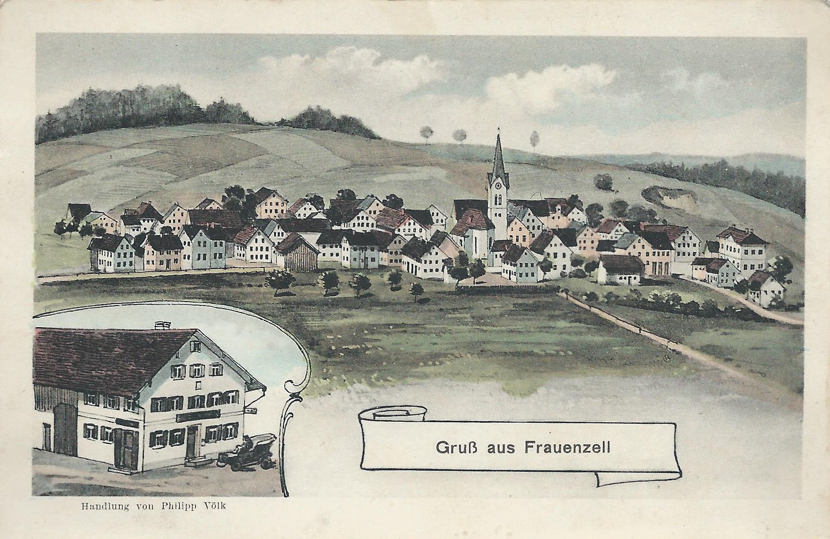 1893 der Frauenzeller Käsehändler Xaver Göhl das 1. Auto im Dorf besitzt,