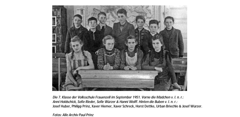 1945 die Schule in Frauenzell am 23.04. wegen des Einmarsches der Franzosen geschlossen wird; in beiden Schulsälen sind bis Juli 1945 befreite kriegsgefangene Serben untergebracht,