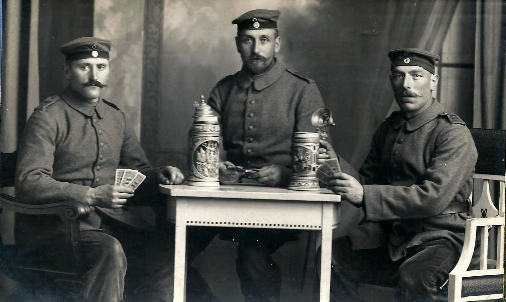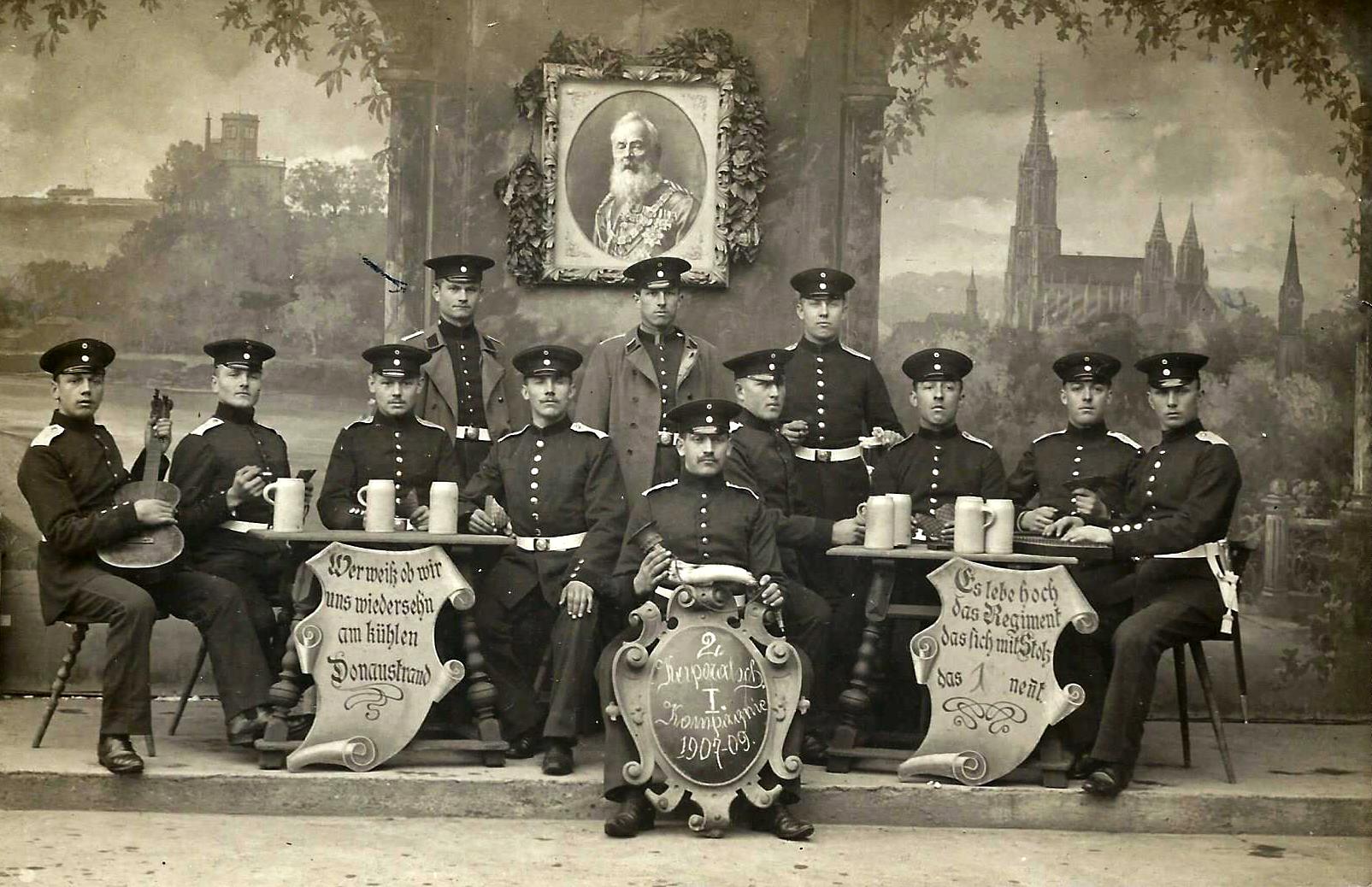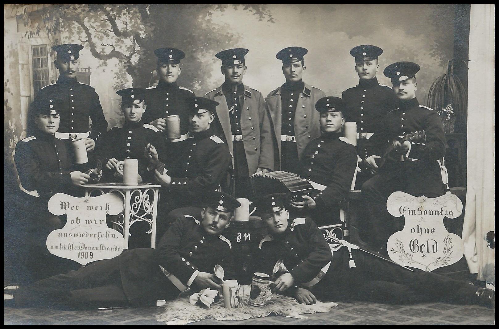 Georg Fähnle,geb. 1850 und Xaver Diet, (1871- 1951) sitzen am Tisch und senden eine Postkarte an Maria Fähnle für ihre Sammlung. Text: Zur Sammlung gesendet. Deine M. Gruß Xaver Diet.