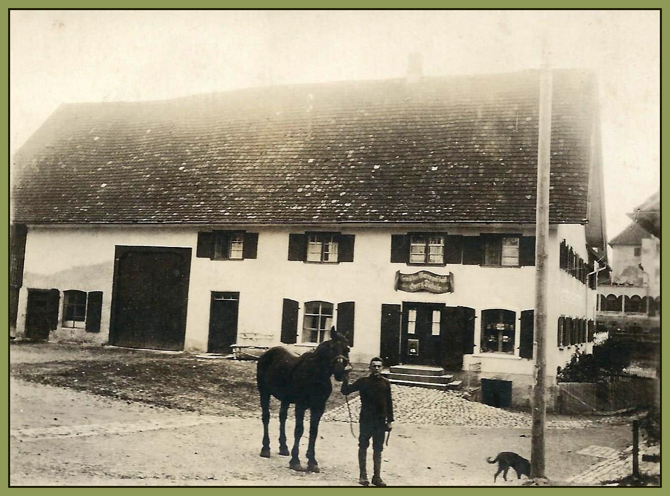 Pferd vor dem Fähnle Haus, rechts Blick in Richtung Brändle Haus und zum sogenannten Schlössle