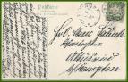 Im Jahre 1901. Postkarte an Sophie Fähnle. Beim Hühnerfüttern. Im Hintergrund die Magnuskapelle und der Lingg Hof.