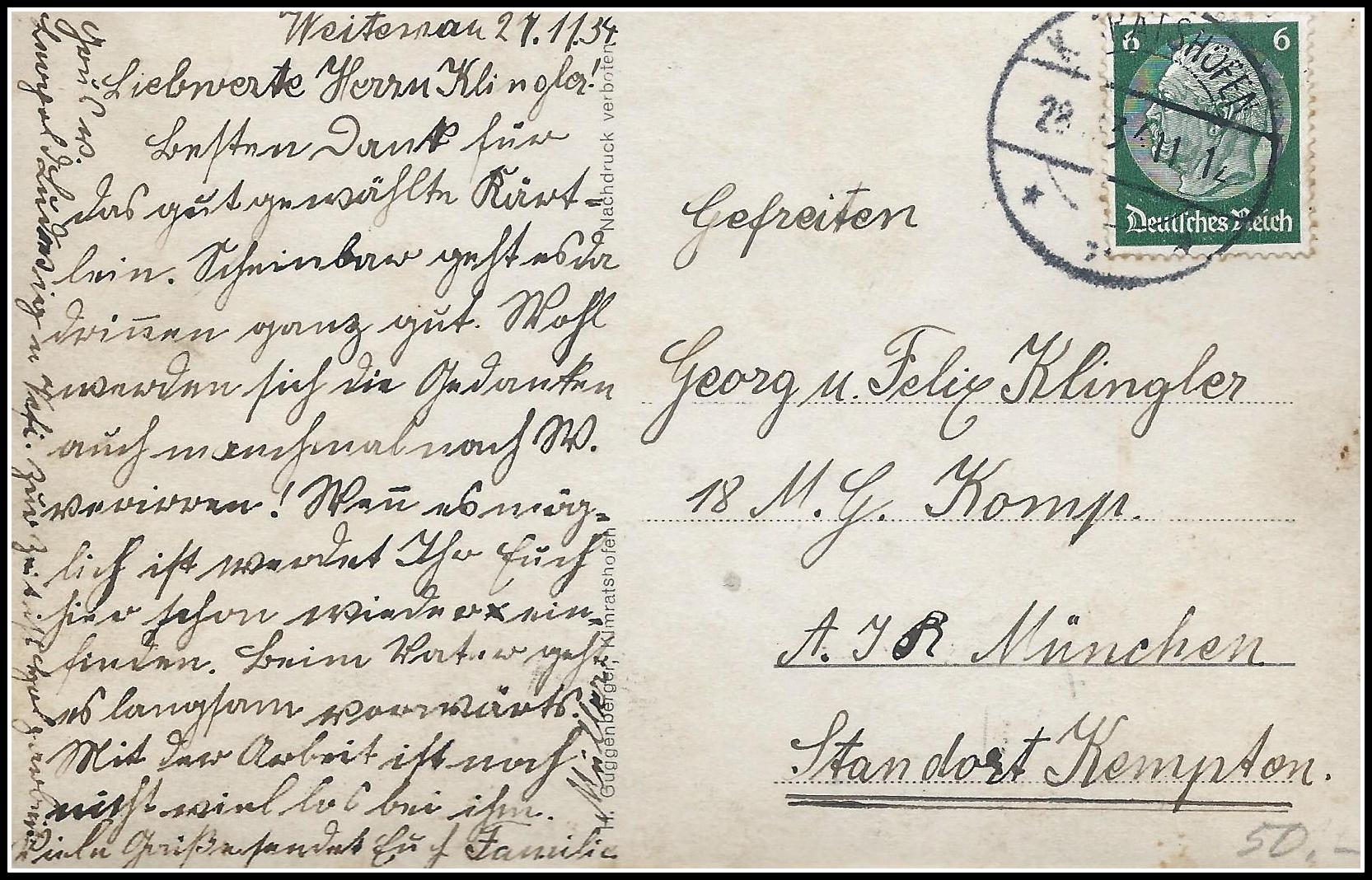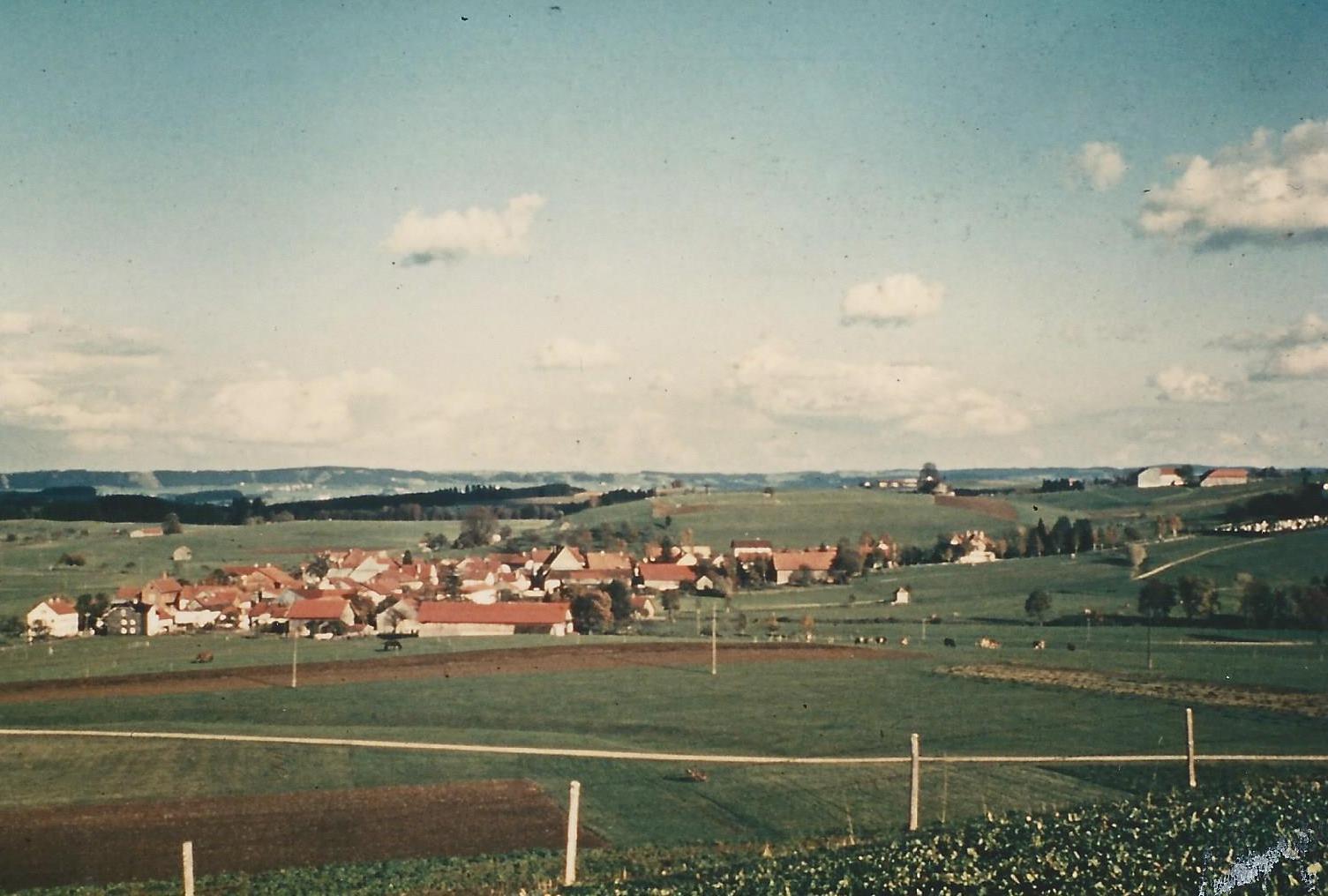 Weissblauer Himmel Kurz Laden in Oberhofen Kimratshofen von Norden 1950