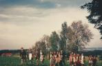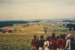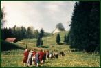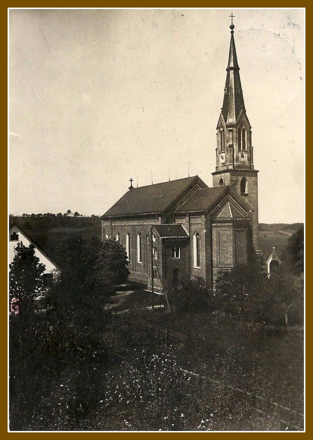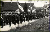Bild 1 : Es ist der 29. Juli 1925. Ludwig Dorn feiert in seinem Geburtsort Primiz.Ein langer Festzug zieht sich den Kirchberg hinauf. Vor uns die Abteilung der Männer, alle in schwarzen Anzügen und mit Hut, sie gehen im Gleichschritt. Bild 2 : Zug derFrauen. Vorne die Jungfrauenkongregation mit Kränzen auf dem Haar. An der Kleidung erkennt man die Zwanzigerjahre. Ein Feuerwehrmann mit Pickelhaube sorgt für Ordnung. Rechts eine hoher maibaumähnlicher Stamm, es ist der Primizbaum.