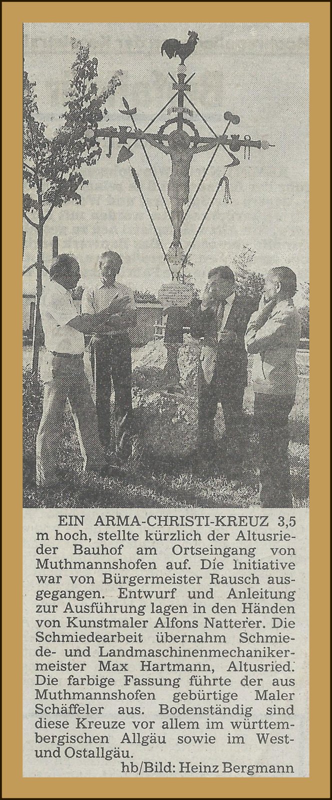 - Arma Christi, Schmiedearbeiten von der Firma Hartmann, Artikel von der AZ mit freundlicher Genehmigung, Fotograf: Heinz Bergmann, 1987