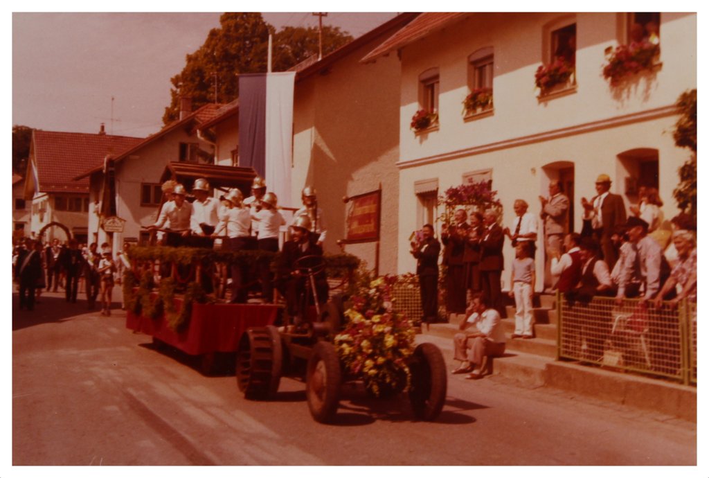- Ein Feuerwehrumzug in den Achtziger Jahren mit einem Oldtimer von Hartmann