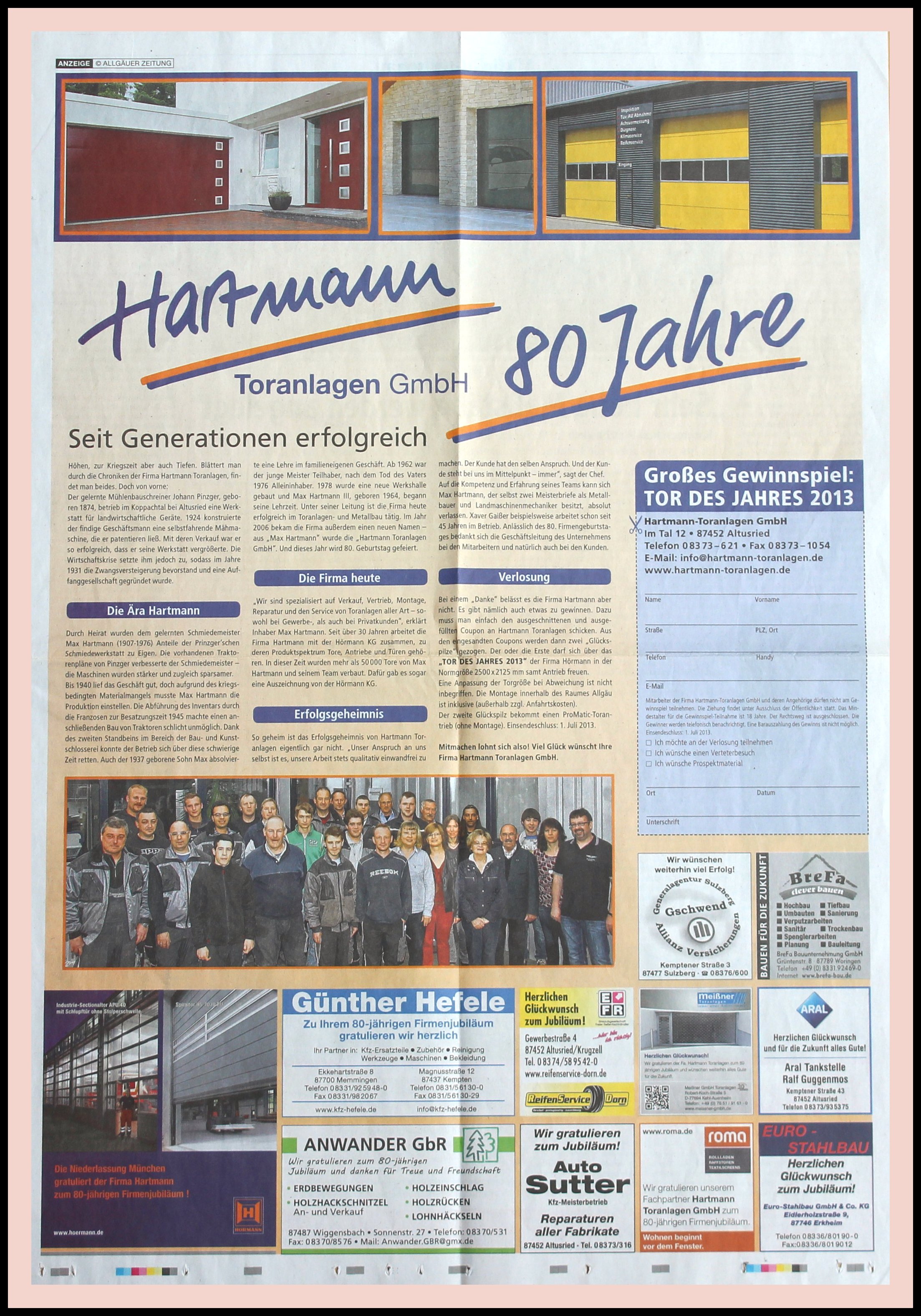 Fünfzig- und achtzigjähriges Firmenjubiläum. Es gibt nun die Firma Max Hartmann in vierter Generation.
