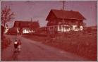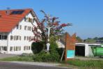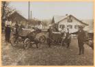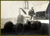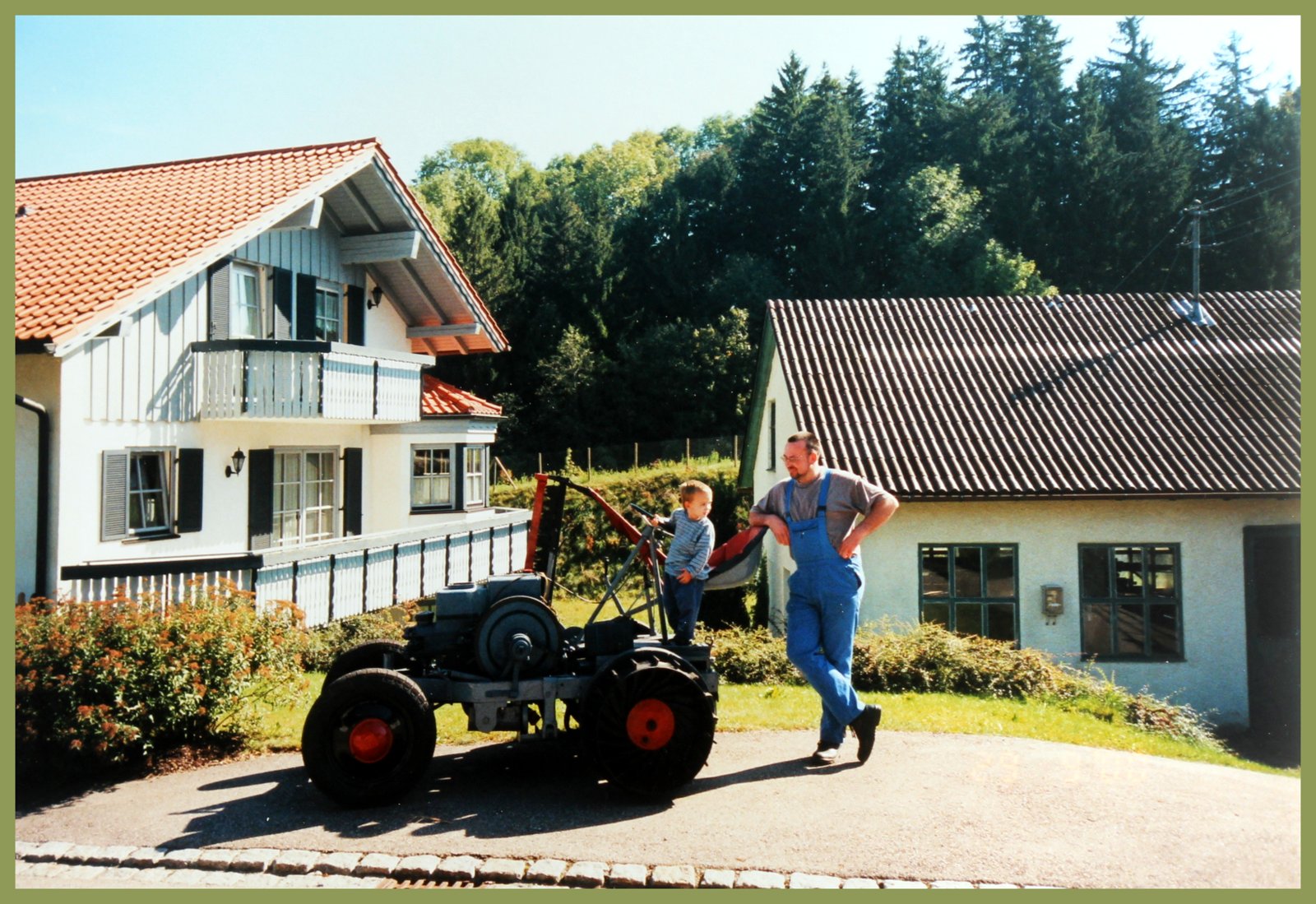 - Max Hartmann auf dem Traktor mit seiner Tochter Gusti, im Hintergrund der Stadel des Gasthauses zur Sonne