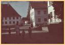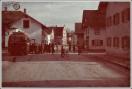- Fußgänger auf der Hauptstraße, rechts Uhrenmacher Römpp und Bäckerei Durst
