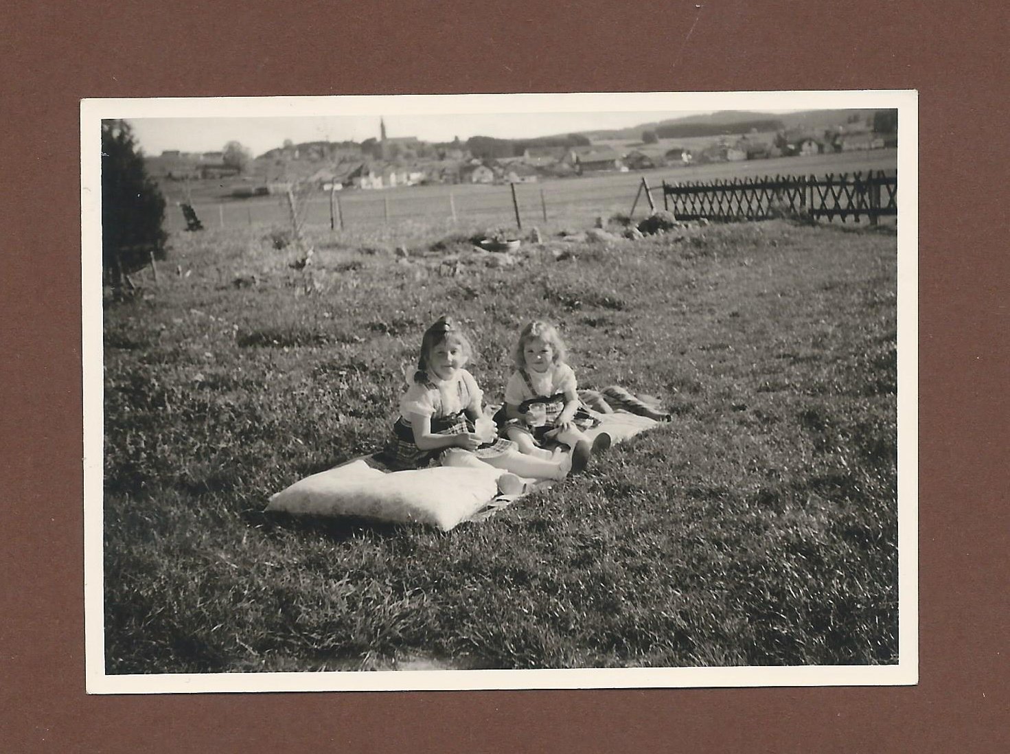 - Zwei Kinder auf der Wiese, im Hintergrund Kimratshofen