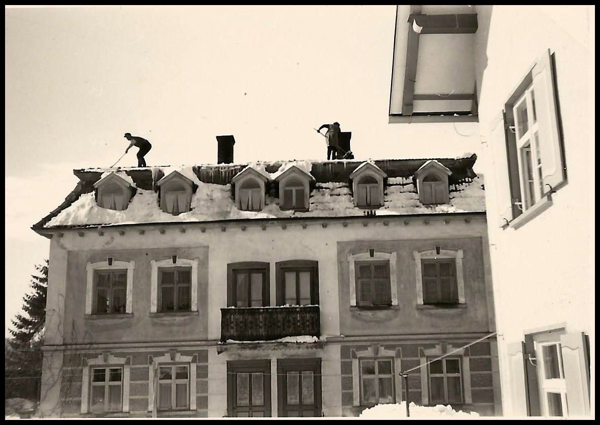 - Die Hausbewohner Kohler und Josephine Thanner sind auf das Dach gestiegen, um es von der Schneelast zu befreien.
