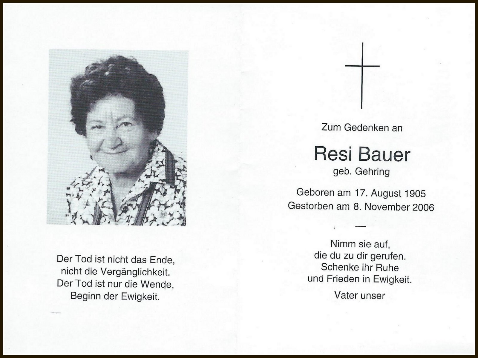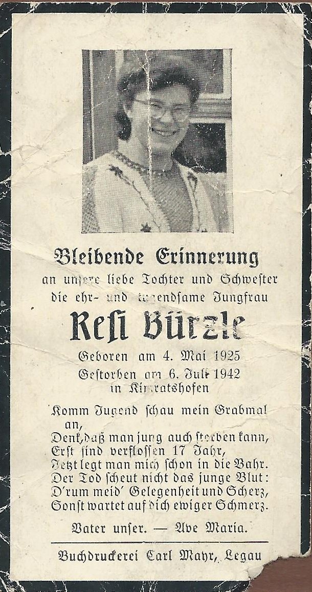 Bleibende Erinnerung an unsere liebe Tochter und Schwester Resi Bürzle