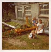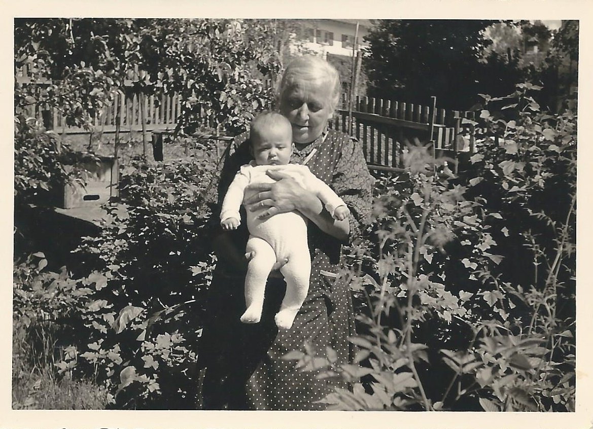 - Theresia Konrad im Garten mit ihrem Urenkel
