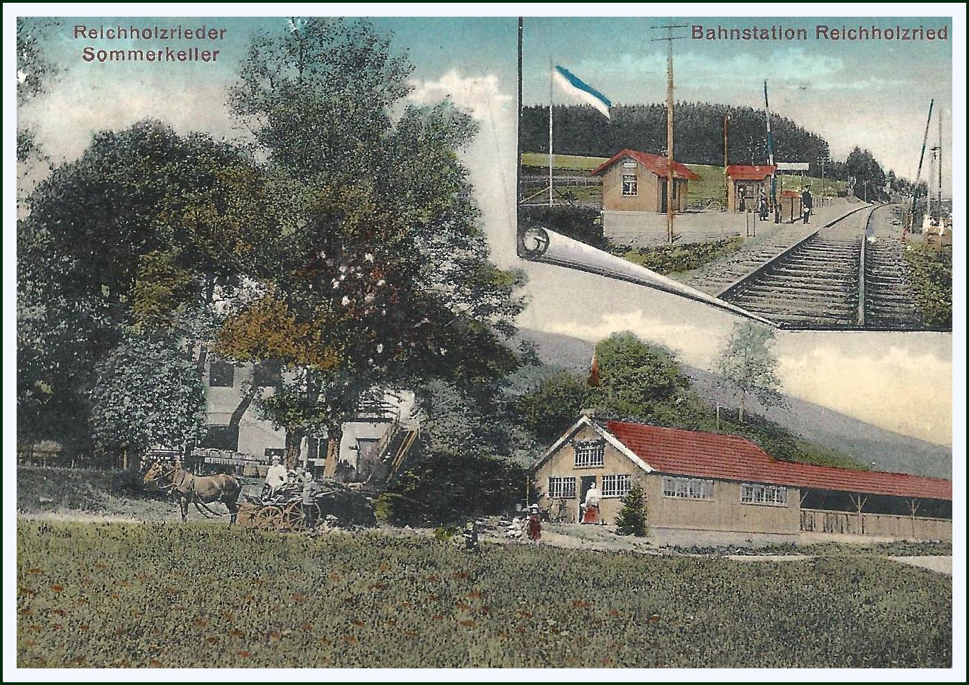 Das Altusried nächstgelegene Dorf ist Reicholzried. Beide Siedlungen liegen erhaben vis a vis auf Moränenhügeln, dazwischen fließt tief eingeschnitten die Iller. Der Luftlinie nach trennen nur drei Kilometer die beiden Orte. Auf der Straße aber über die Illerbrücke bei Krugzell ist es mehr als doppelt so weit. Deshalb bestand seit langer Zeit eine Fähre bei Buch. Zuerst hatte man über die Iller ein Drahtseil gespannt. Daran hing das Fährschiff, das war ein etwa zehn Meter langer Kahn mit einem großen Ruder am Heck. Durch Drehung des Ruders nach links oder rechts drückte das fließende Wasser das Schiff hinüber oder herüber. Auf der Fähre sind zwei Mädchen und ein großer Junge, er ist der Steuermann. Oben am Landesteg stehen zwei Personen. Als die Staustufe in Wasserei fertig war, war es mit dem Fährbetrieb vorbei, denn das stehende Wasser im Speichersee konnte die Fähre nicht mehr bewegen. Zwei Fähren gab es an der Iller. Eine in Fischers, sie passte, wenn man nach Grönenbach oder Memmingen wollte. Die Fähre Buch benutzte man, wenn man den Ort oder die Bahnstation Reicholzried zum Ziel hatte. Dann konnte man bequem mit dem Zug auch weit entfernte Ziele erreichen.