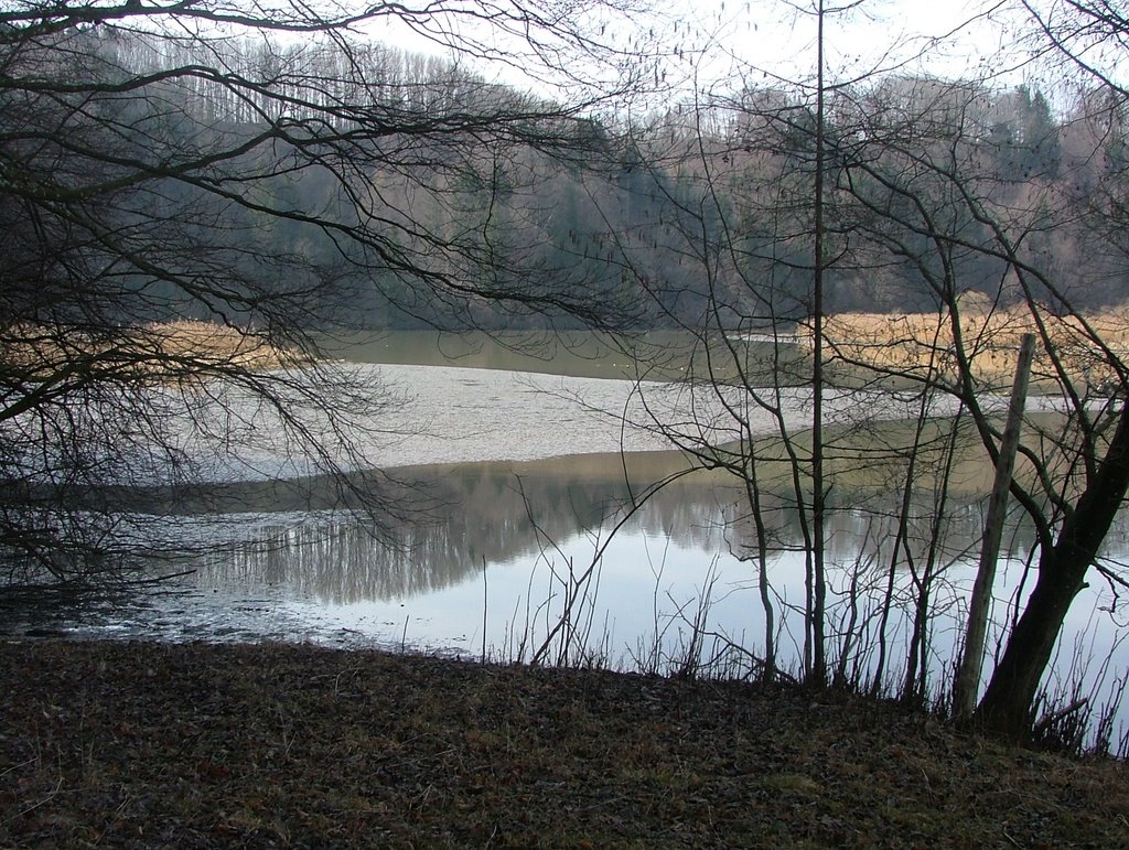 - Die heute schilfbewachsene Insel im Stausee war früher eine Uferwiese.