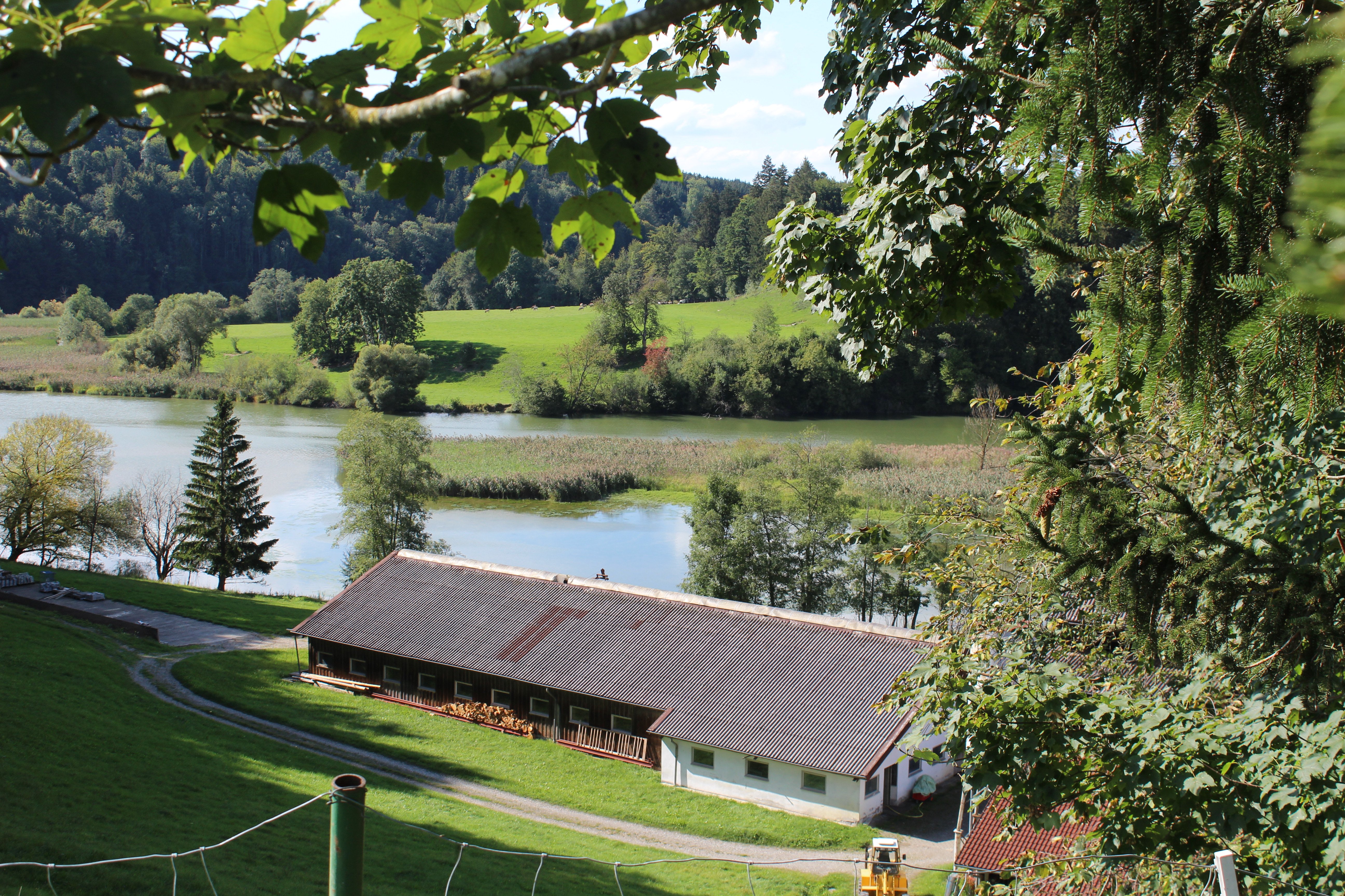 - Wo heute eine Wiese ist, stand früher der Riedhanser Hof.