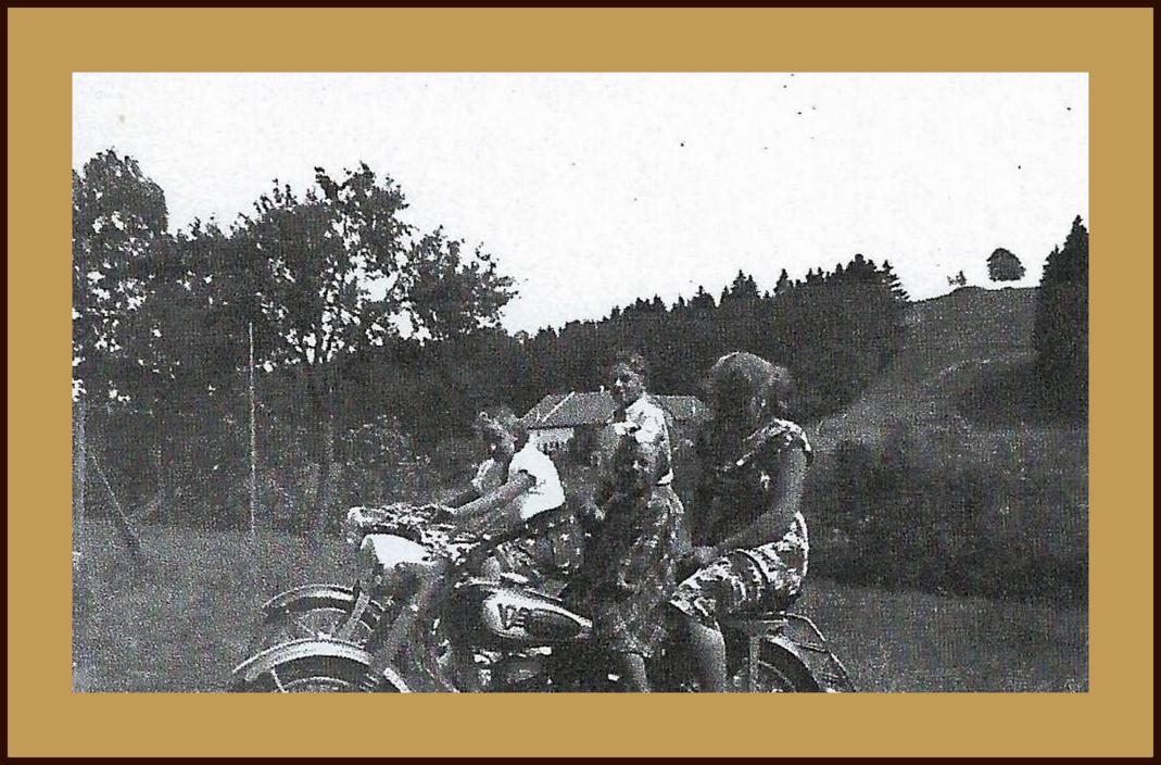 - Auch in Ried hält die Motorisierung Einzug. Balbina auf dem Motorrad.