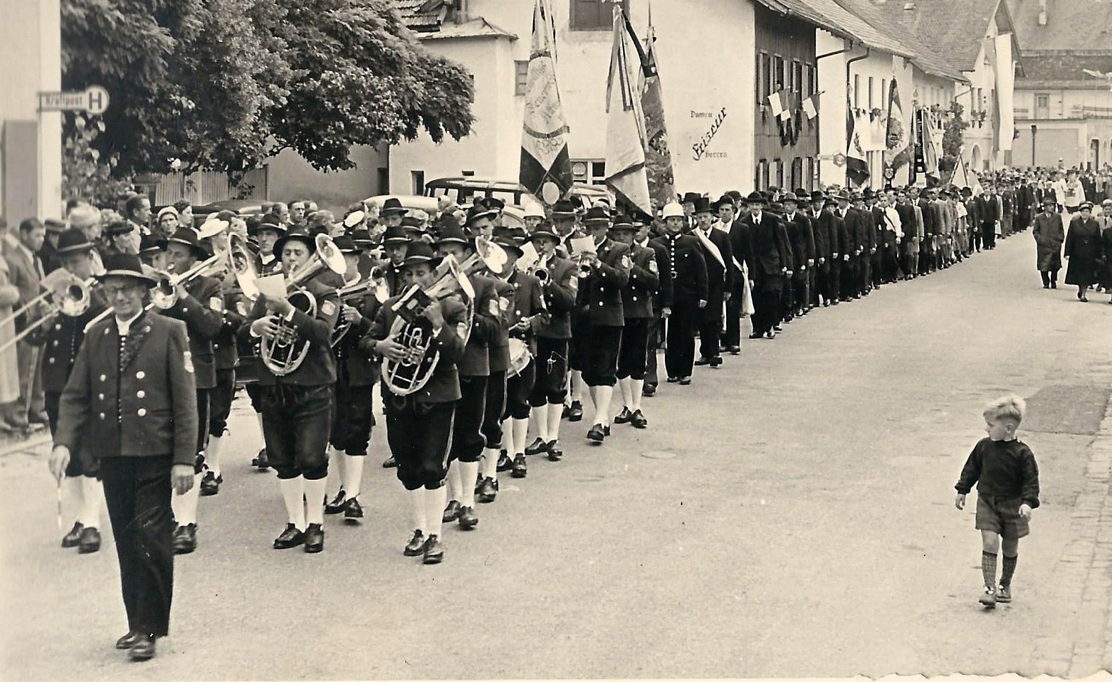 1961 Jubiläum der Harmonie Musik. Witzigmann Xaver war Dirigent seit 1953. Mayer Anton war Ehrendirigent und Gründer der Harmonie Musik.