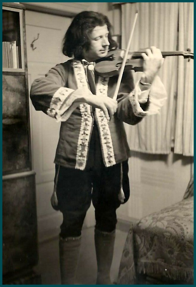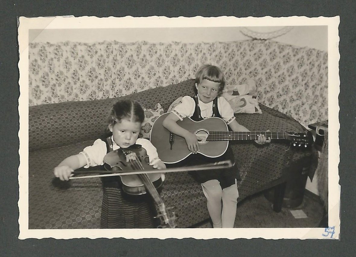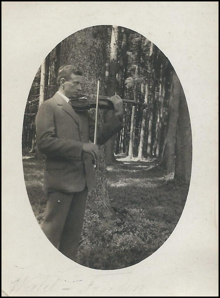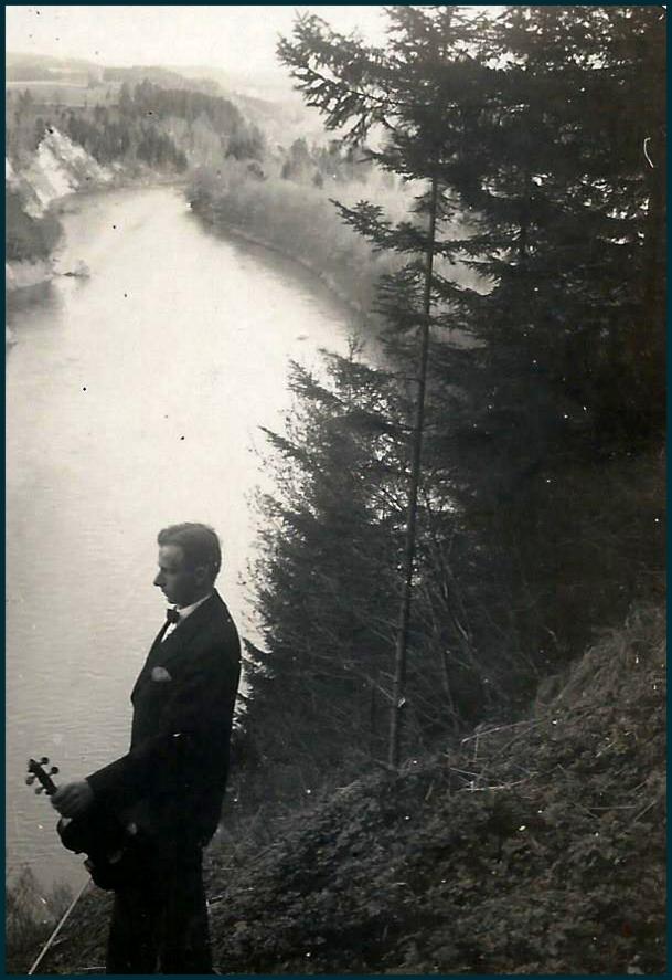 Mit der Geige hoch über der Iller 1932. Der Fotograf hat zwei Bilder vereinigt.