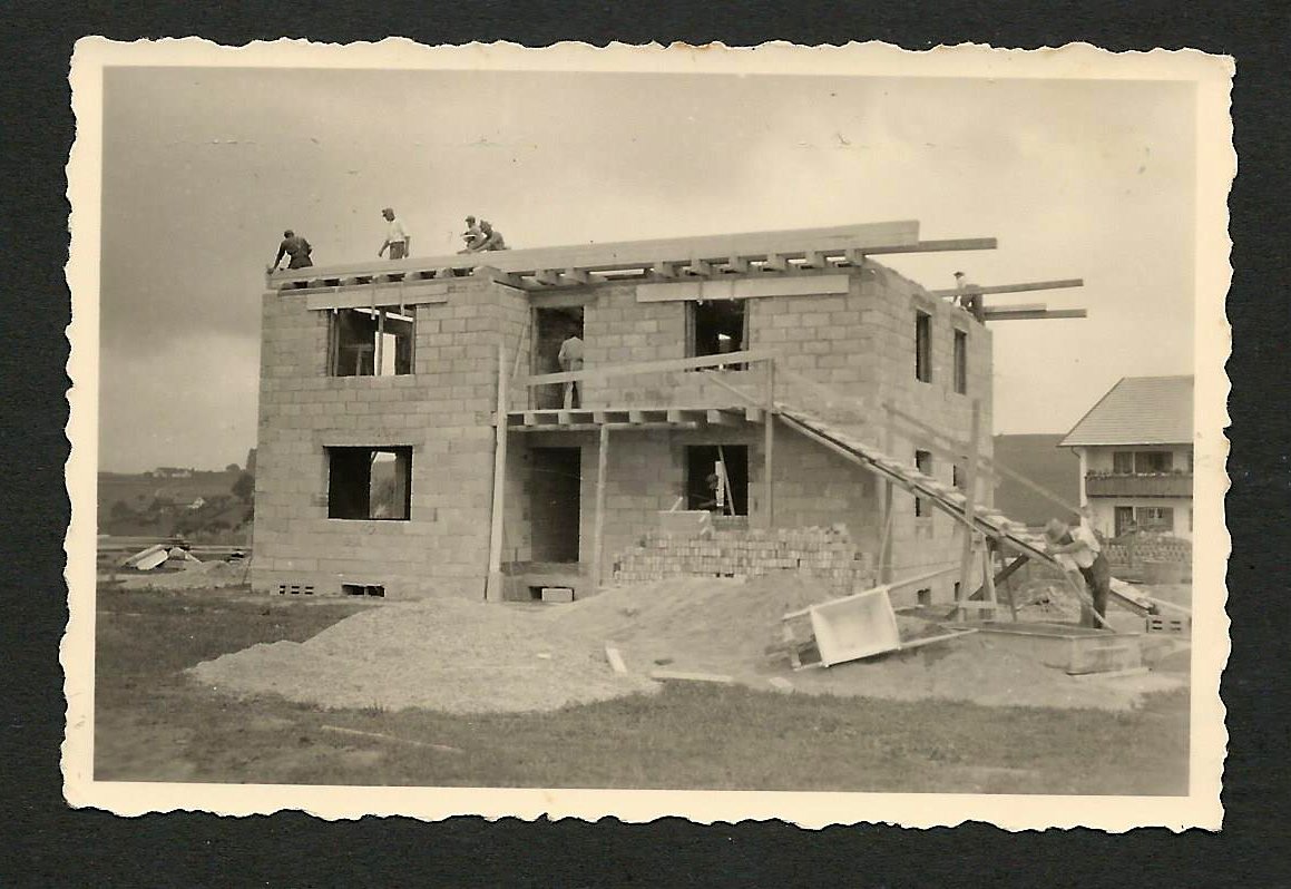 1949 baute Witzigmann im Schönen Grund ein Zweifamilienhaus. Noch gab es keine Bagger und Krähne. Mit Leitern und Rampen baute man in die Höhe.