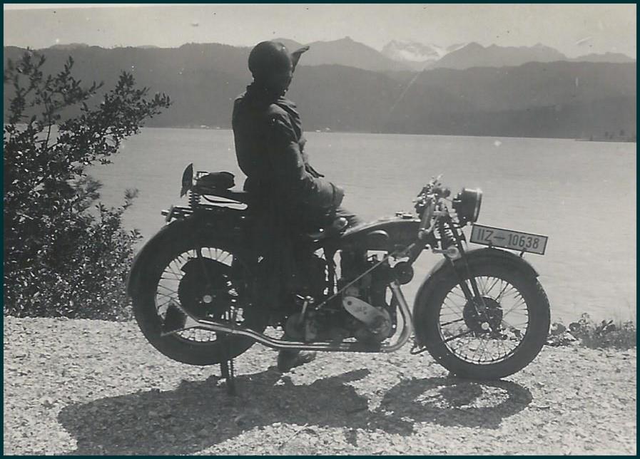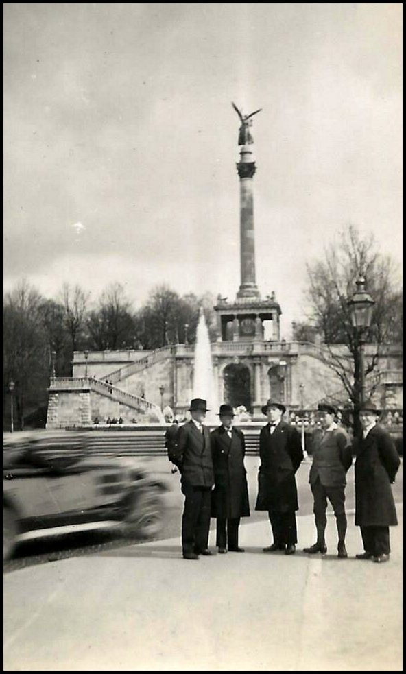 1935 Studienzeit in München: Vor dem Friedensengel. Blick vom Maximilianeum über München. Vor der Bavaria. Fahrt auf der autoleeren Autobahn A8.