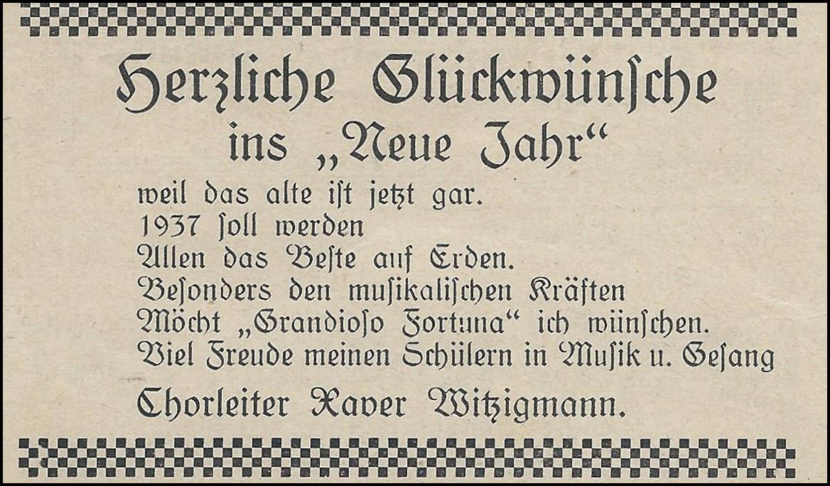 Herzliche Glückwünsche ins Neue Jahr 1937