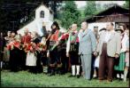 - Trachtenverein, rechts Stefan Dörfler, im Hintergrund, das Knisch Haus