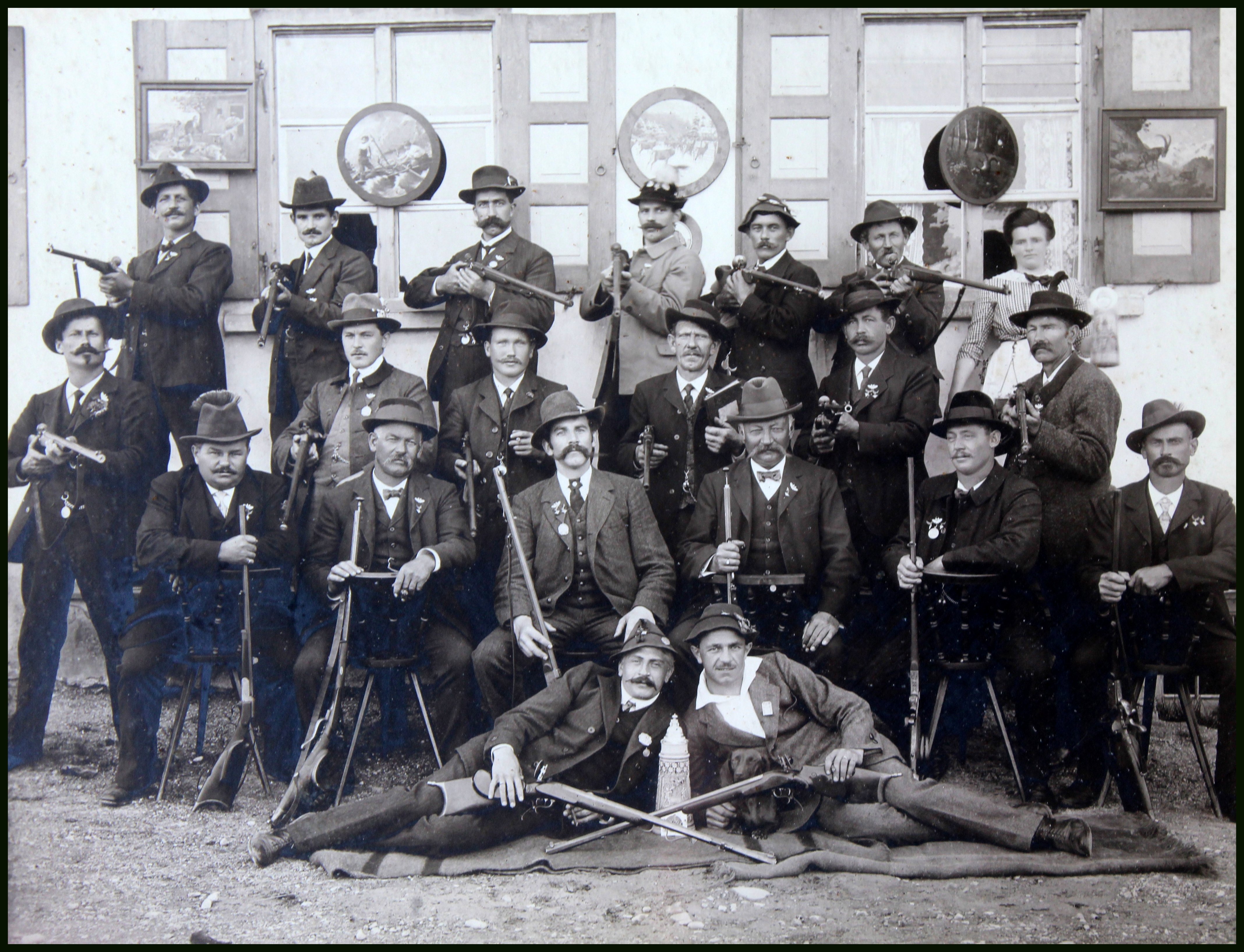 Die Themen der Schützenscheiben sind Landwirtschaft, Trachten, Bergsteigen, Hochzeiten, Ehrungen für Verdienste und witzige Bemerkungen ( Finanzamt und Zimmer Nr. 13 ) . Am häufigsten sind aber Bilder aus der Jägerei.
