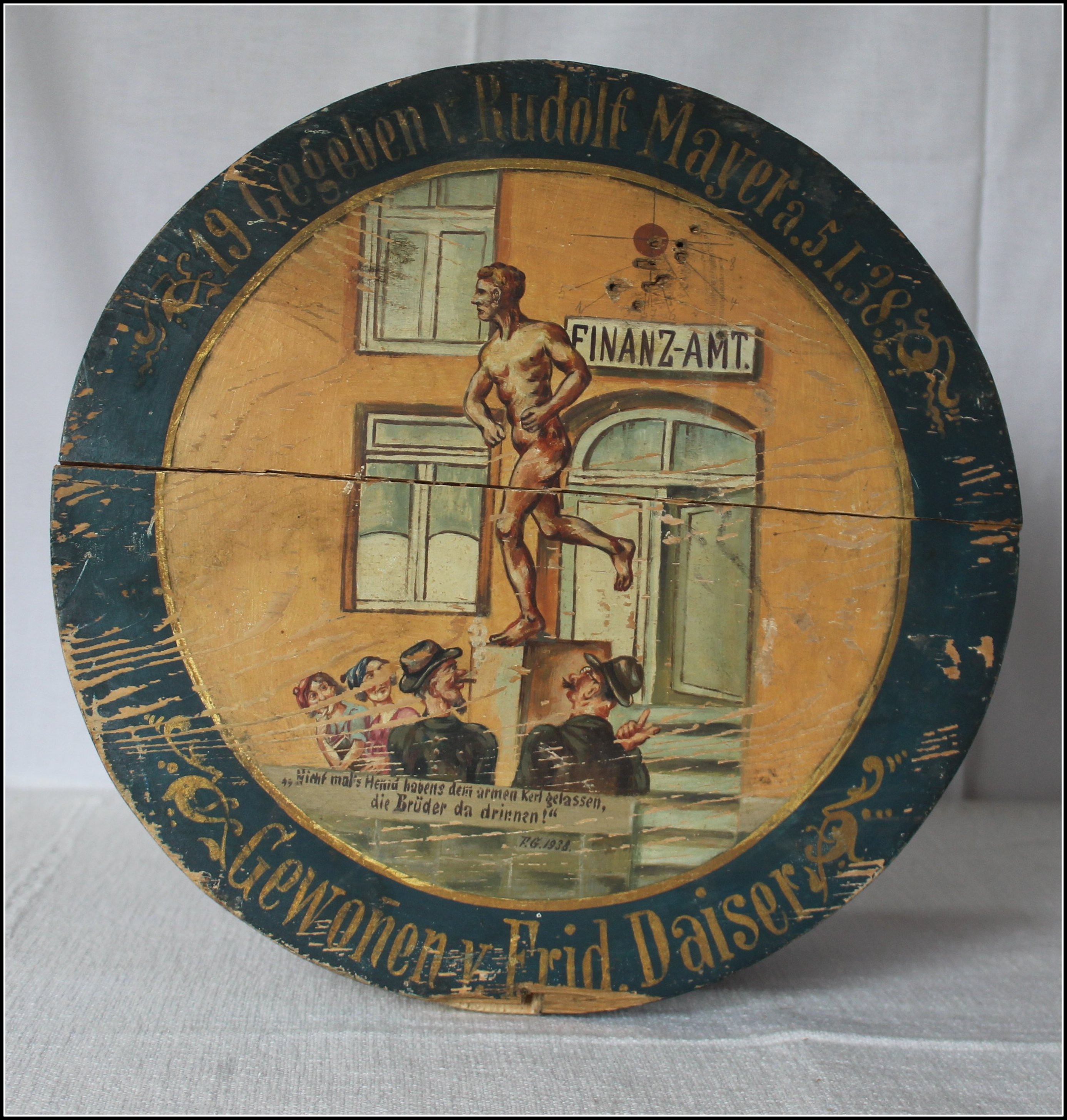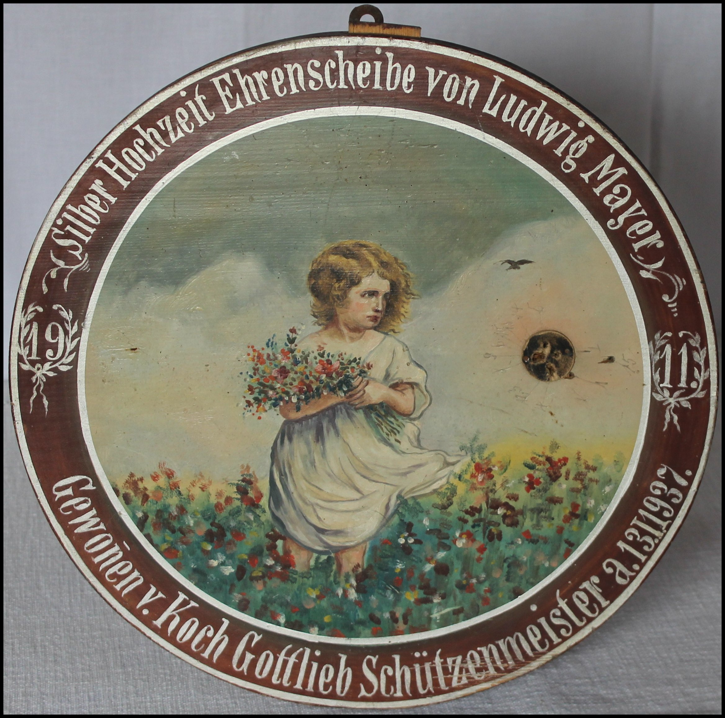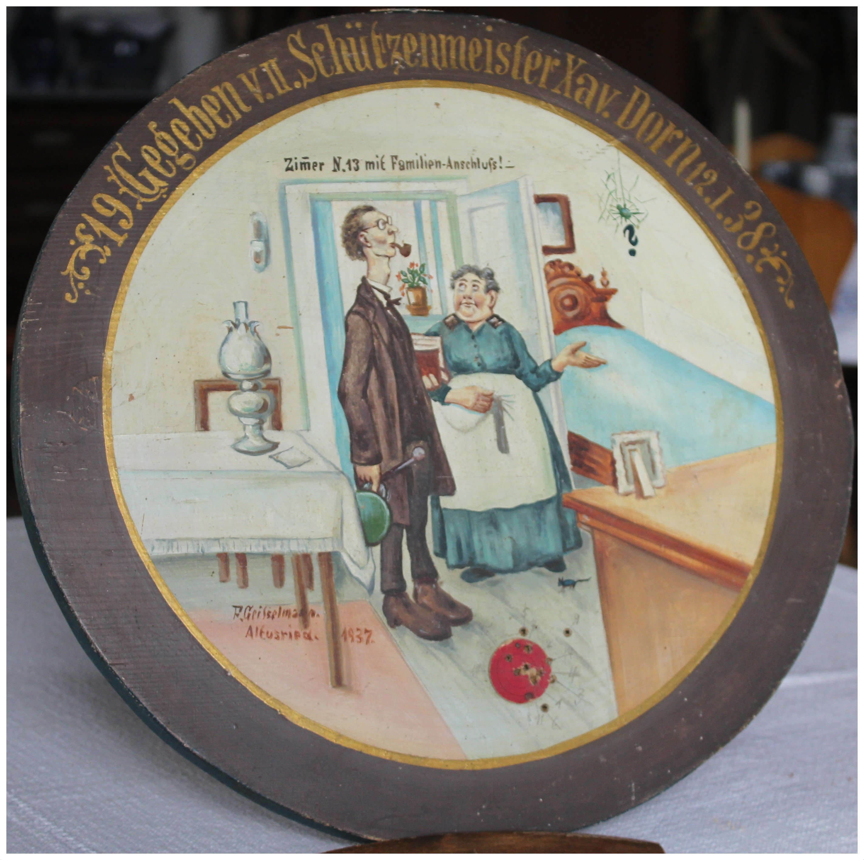 1937 Gewonnen von Gottlieb Koch, Schützenmeister. Das Bild ist nicht signiert. Der Malstil verrät aber den Maler Geißelmann.