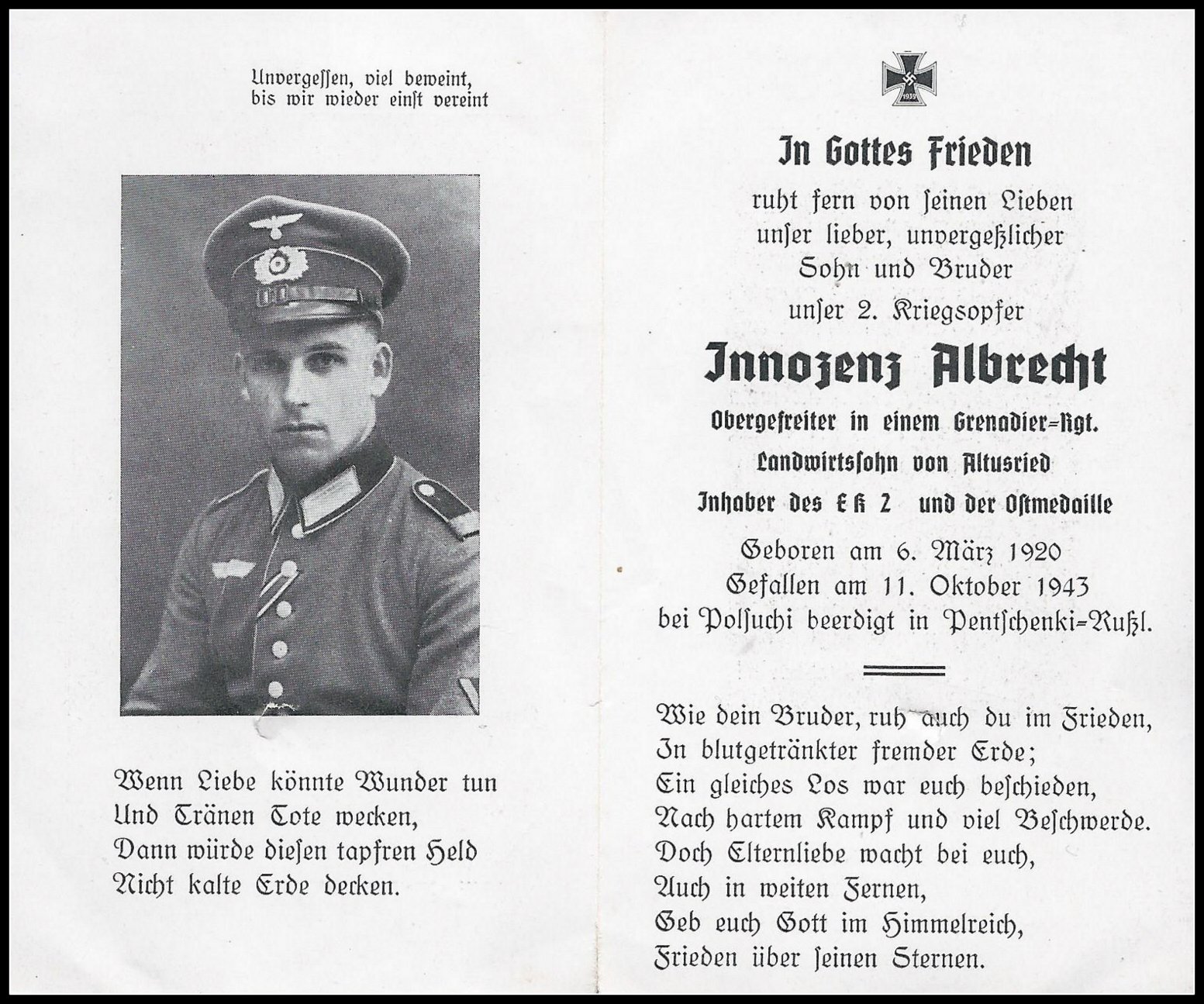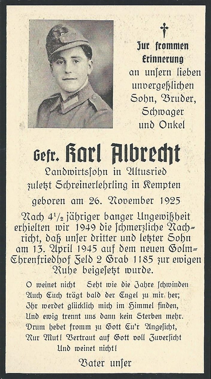 Die Familie Albrecht verlor drei Söhne im zweiten Weltkrieg. Ein vierter Sohn verstarb im Alter von zwölf Jahren an Diphterie.