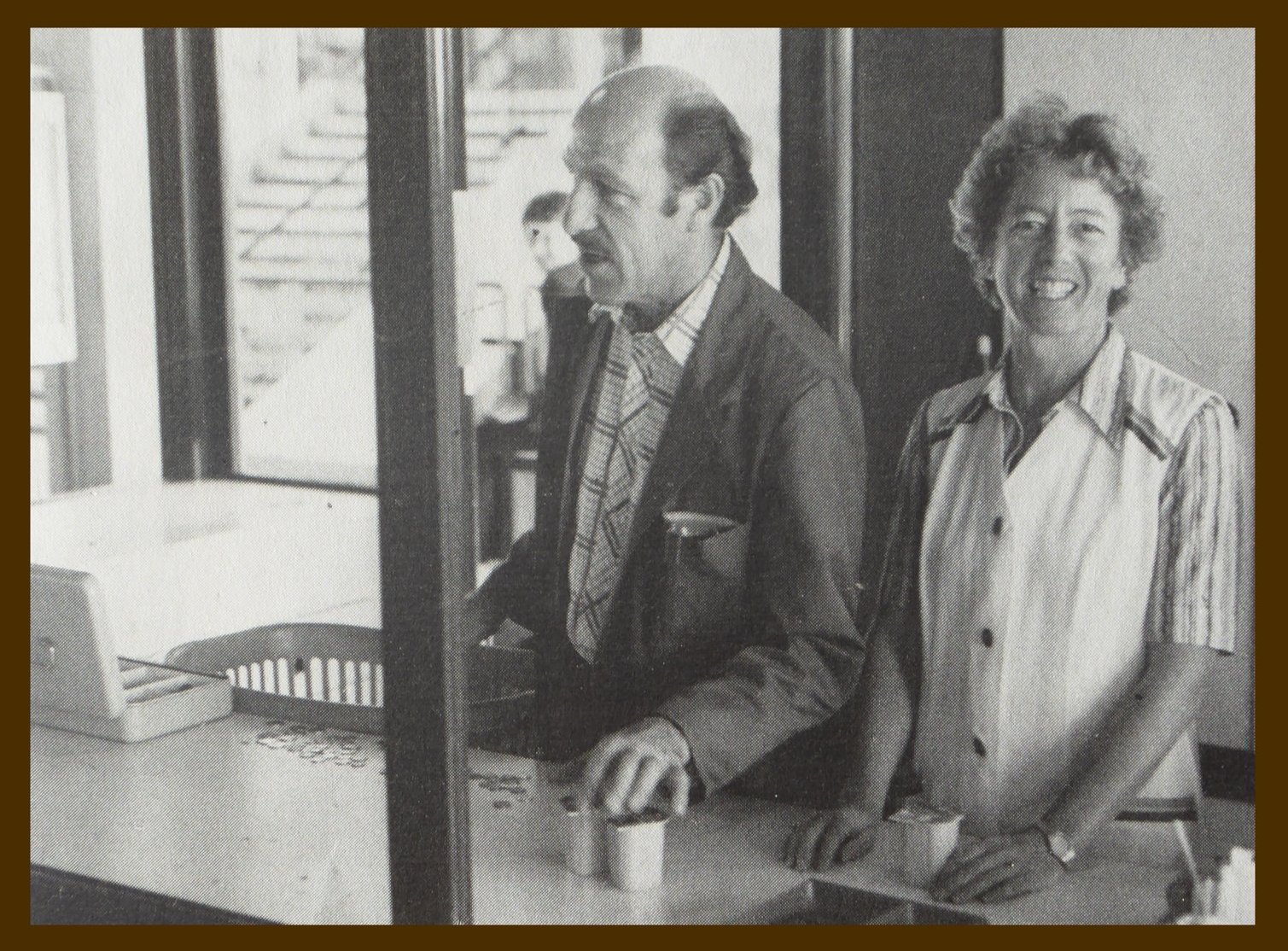 - Hausmeisterehepaar August und Paula Reffler , sie sind bereit, die Pause beginnt, gleich kommen die Schüler in Scharen.
